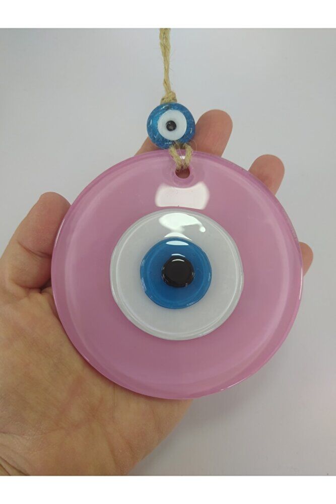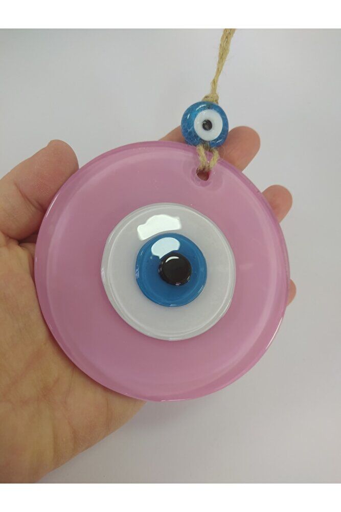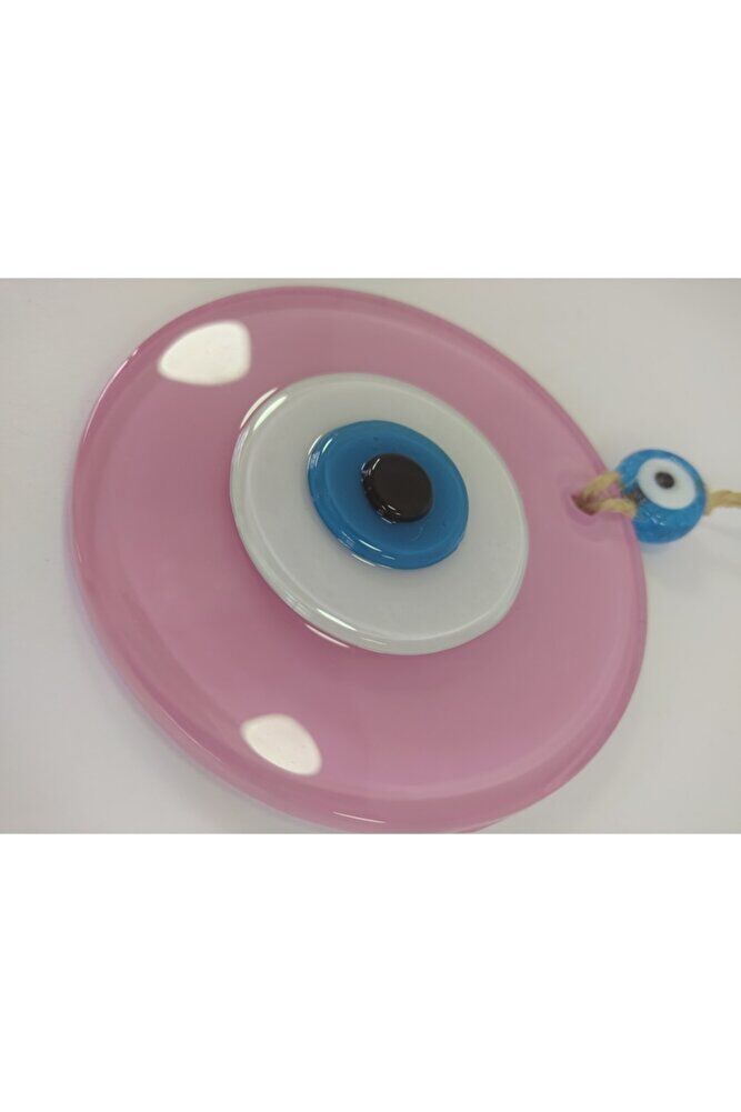 Handmade glass evil eye bead offers an eye-catching wall decoration with its 10 cm size; It adds a warm and stylish touch to your space with its opaque powder pink color; Thanks to its glass material, it reflects the light, making your room look brighter and more spacious; This decorative object, which you can choose as a gift, offers an original and meaningful gift alternative for your loved ones;