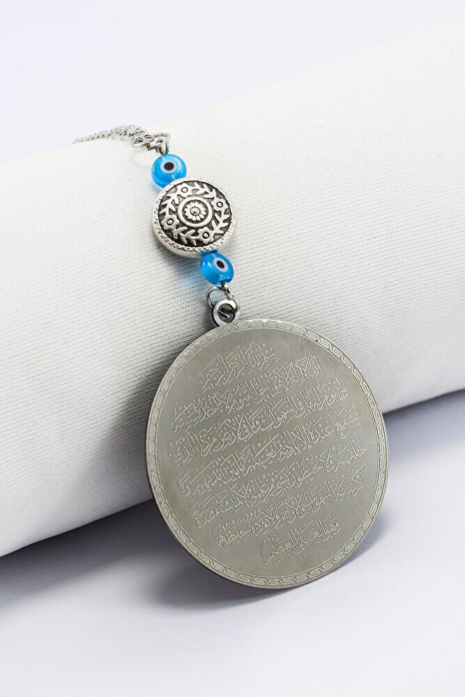 Otantik Boncuklu Yerli Üretim Çelik Ayetel Kürsi Felak Nas İhlas Araba Dikiz Ayna Süsü 4,5cm