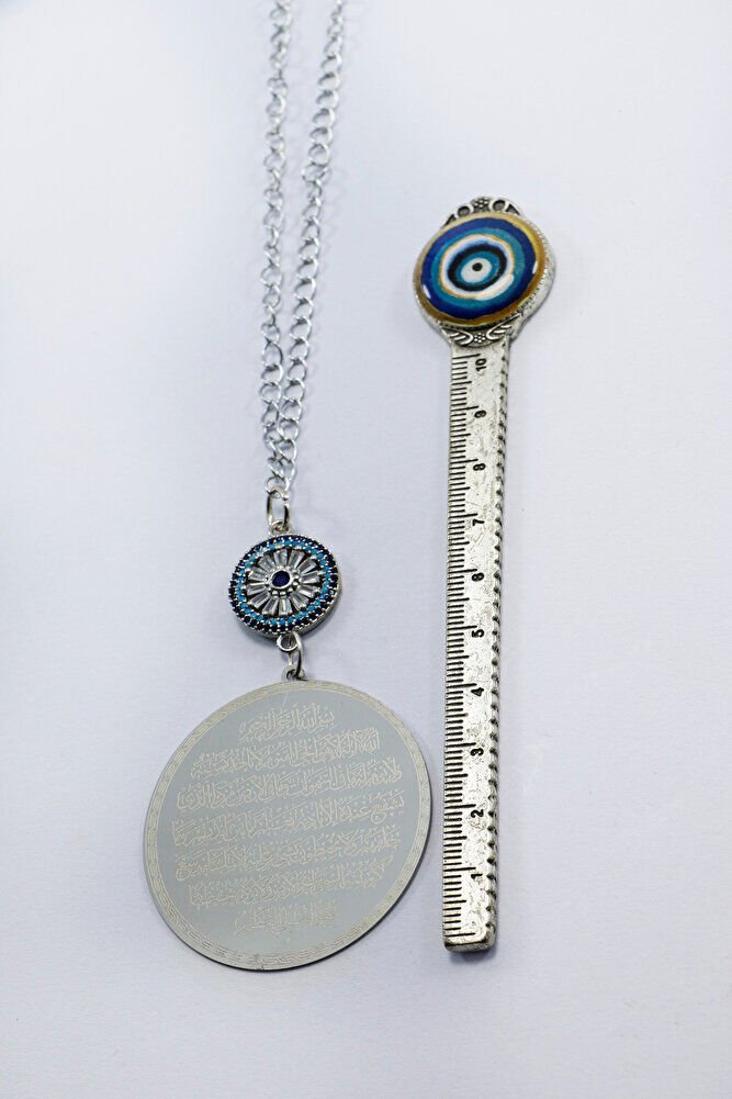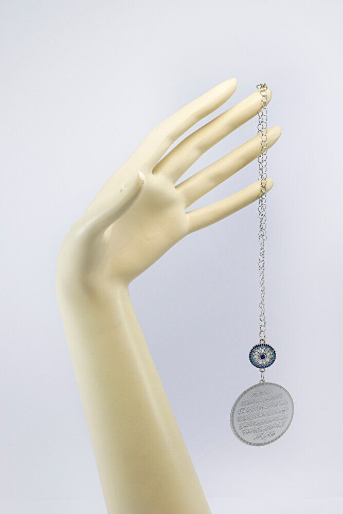 Parlak Taşlı Nazar Çelik Ayetel Kürsi Felak Nas İhlas Çift Taraflı Araba Dikiz Ayna Süsü 4,5cm