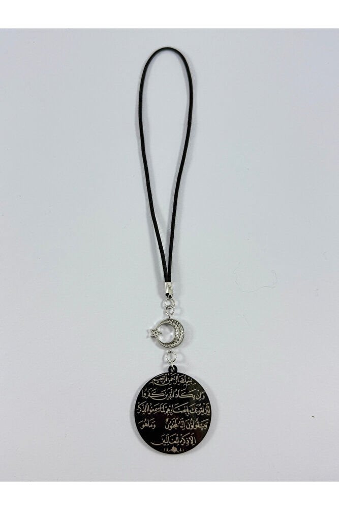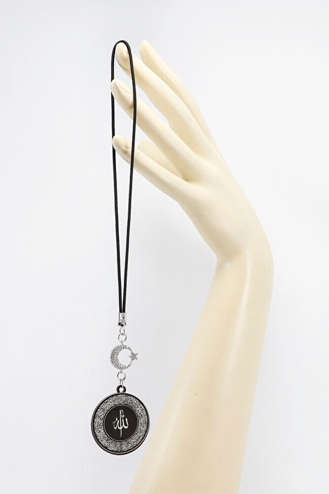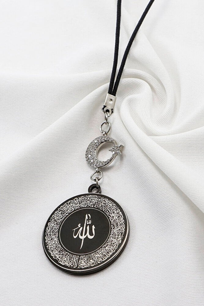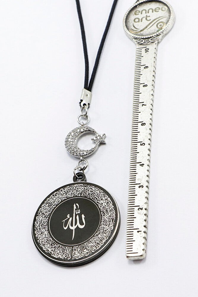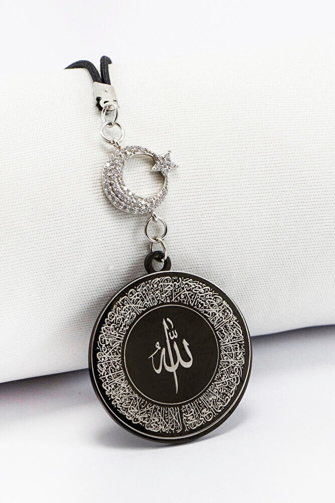 Parlak Zirkon Ay Yıldızlı Siyah Ayetel Kürsi Allah Lafzı Nazar Ayeti Çelik Araba Ayna Süsü