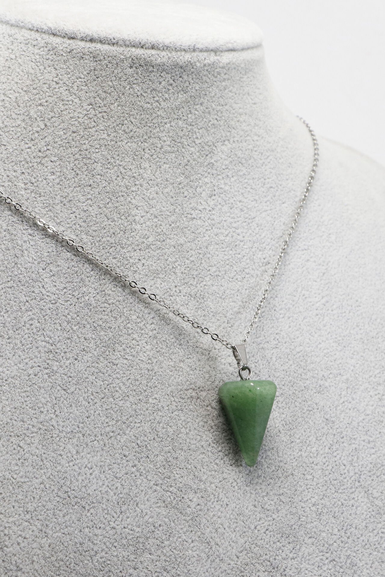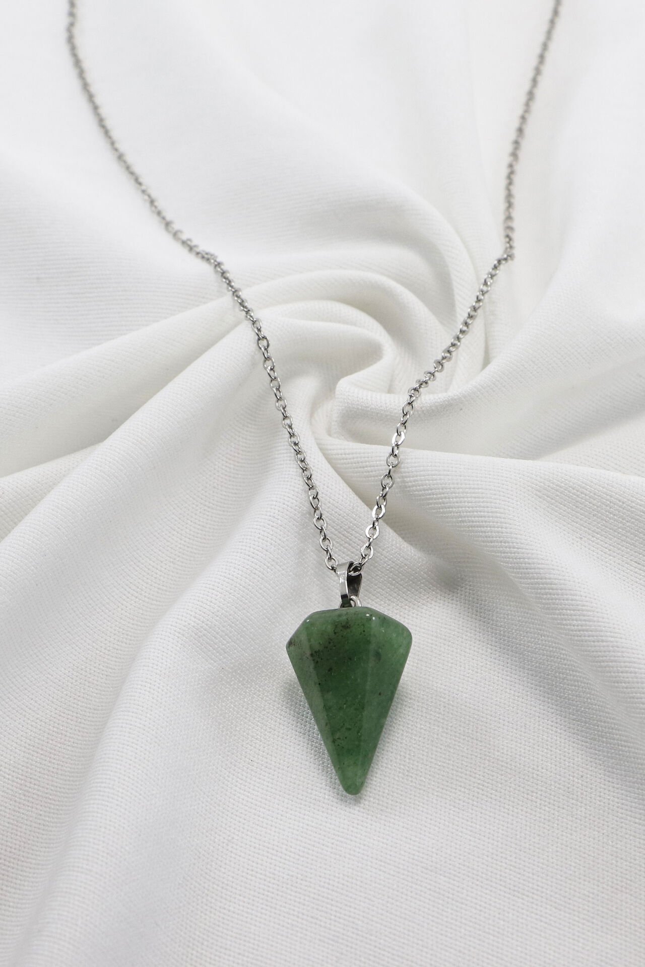 60 cm uzunluğundaki paslanmaz çelik zinciriyle dayanıklılık ve şıklığı bir araya getiren bu kolye, doğal Aventurin taşı ile tasarlanmıştır.