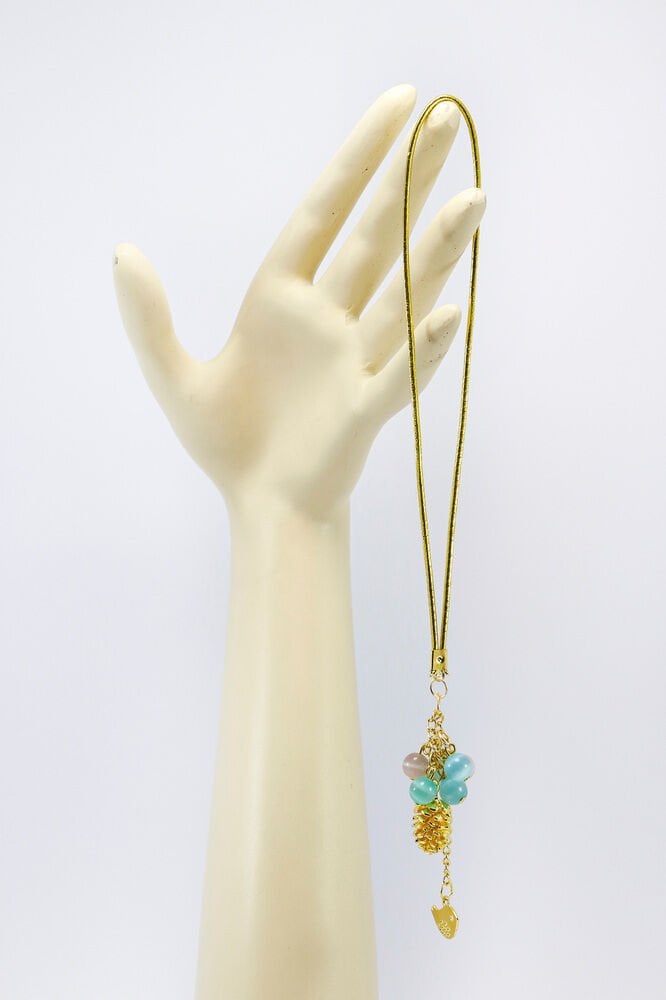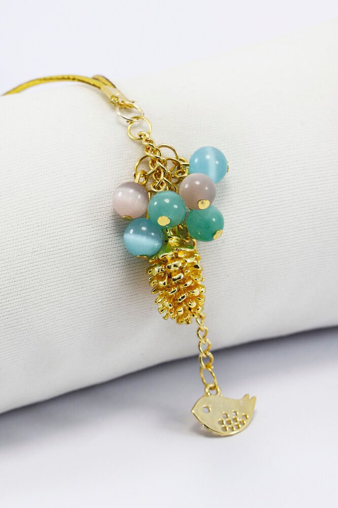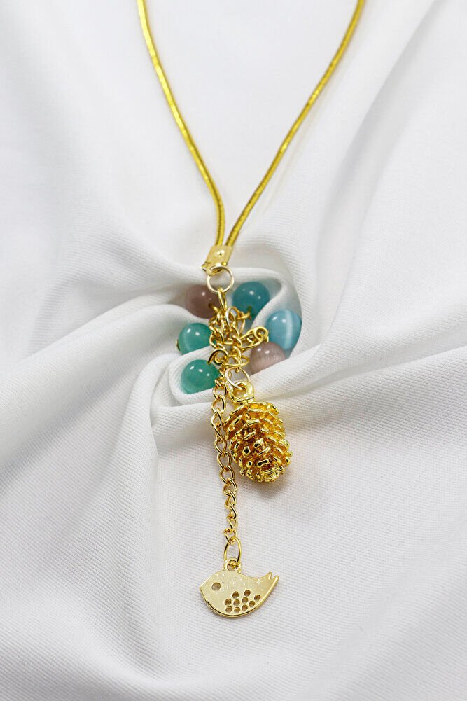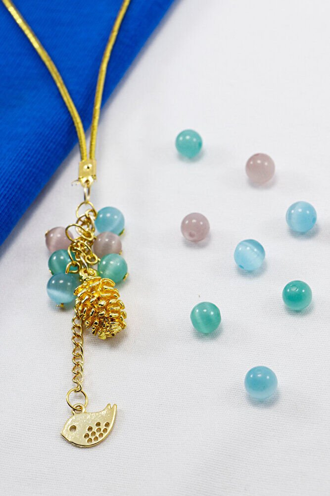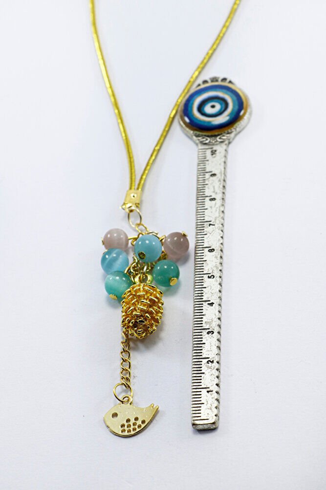 Pastel Cam Boncuklu Salkımlı Metal Kozalak Araba Dikiz Ayna Süsü, Kuşlu Araba Hediyesi