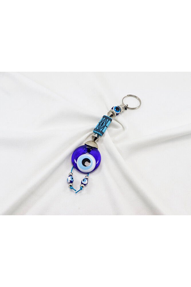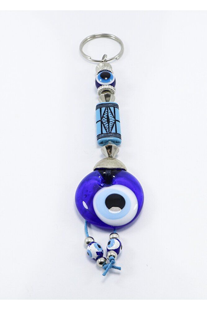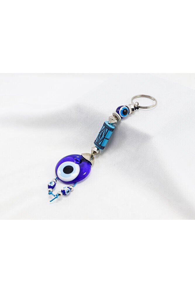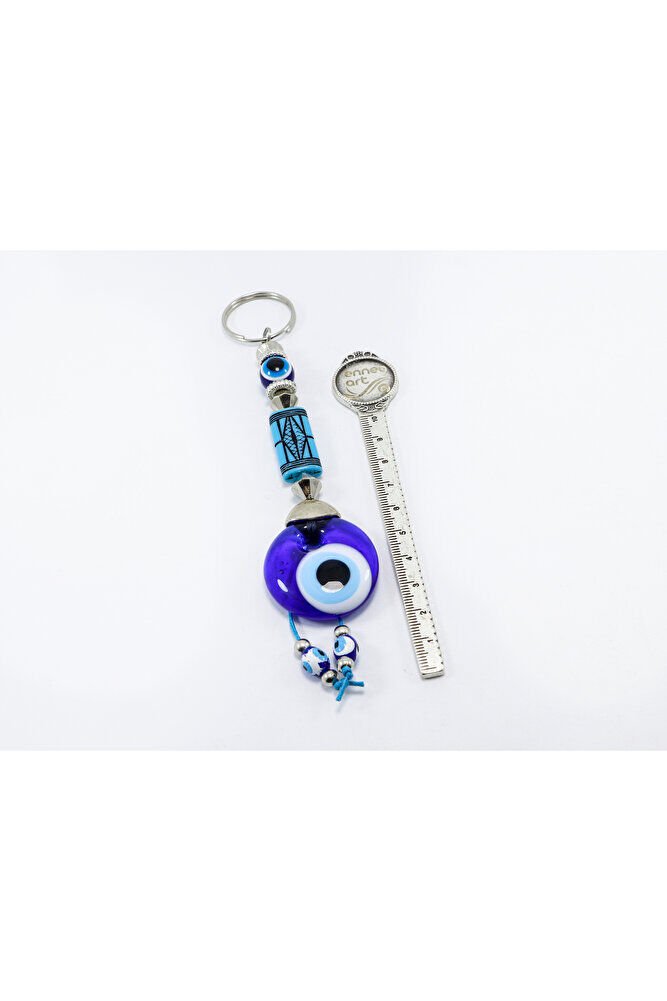 Desenli Yassı Dikdörtgen Boncuk El Yapımı Cam Nazar Boncuklu Anahtarlık