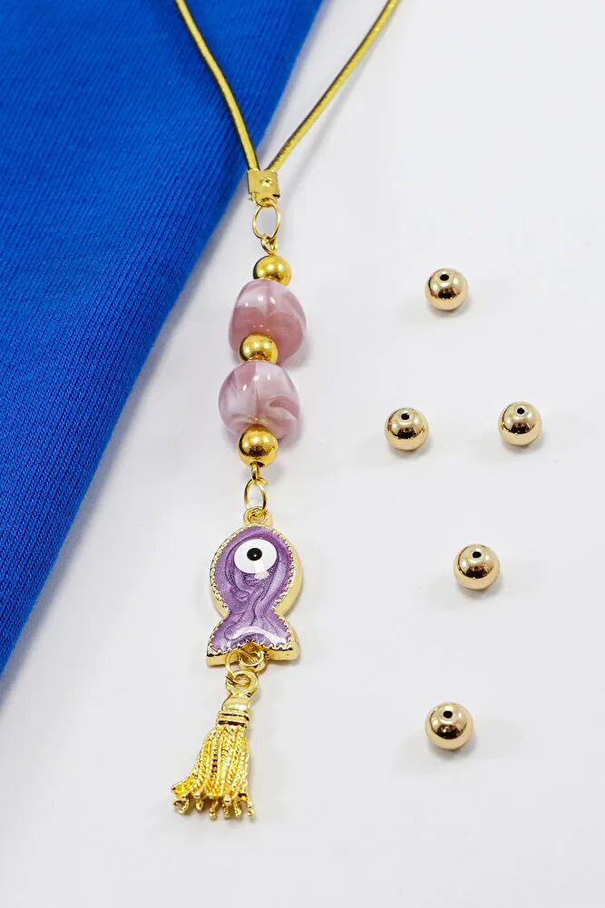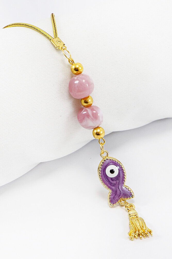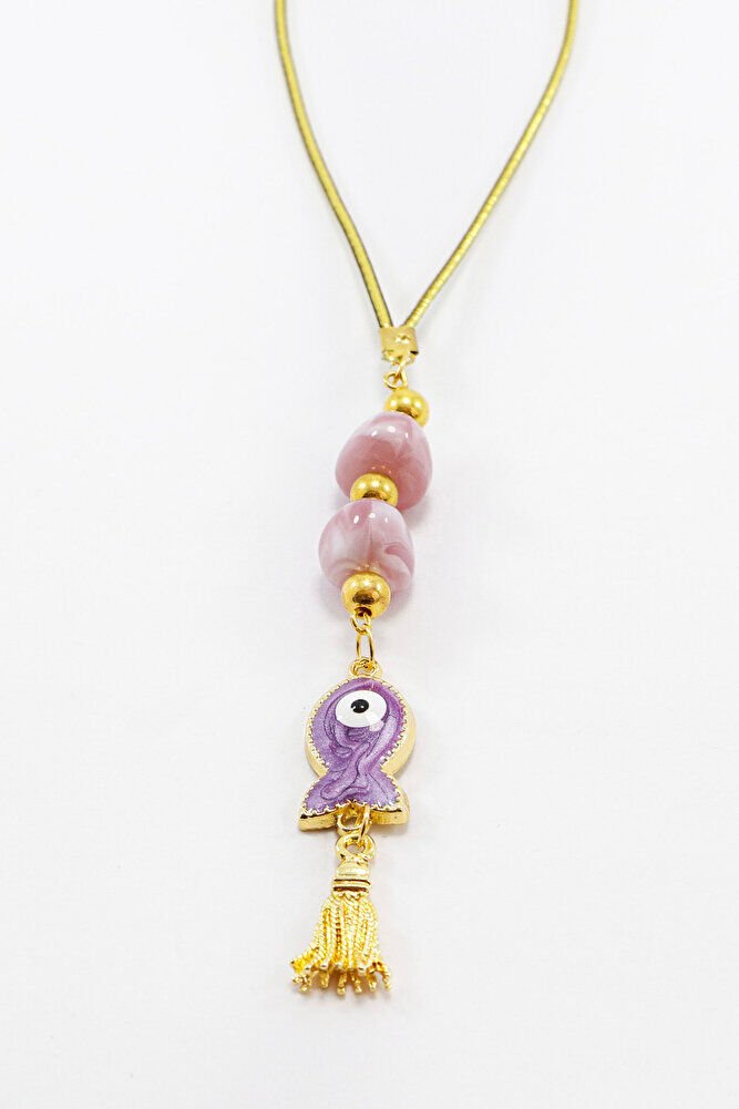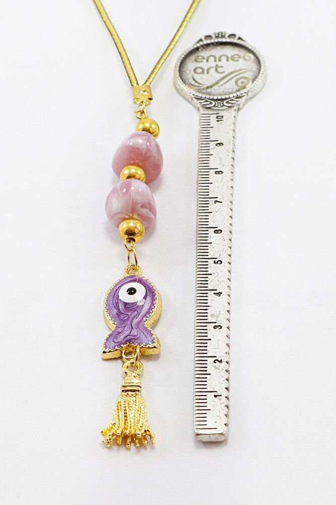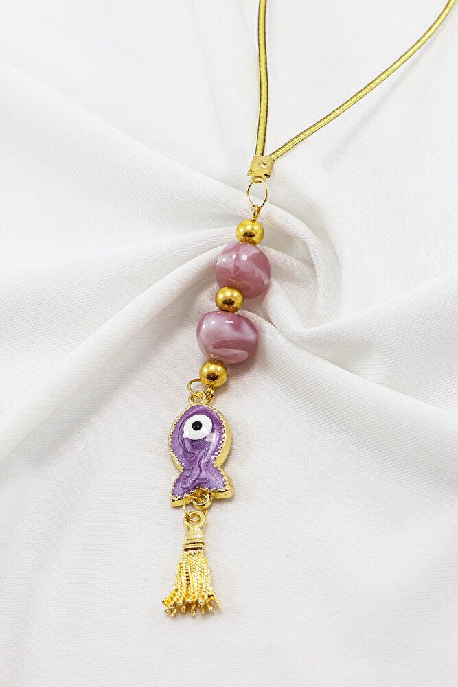 Pembe Boncuklu Mor Sedefli Balık Figürlü Araba Dikiz Ayna Süsü, Yeni Araba Hediyesi