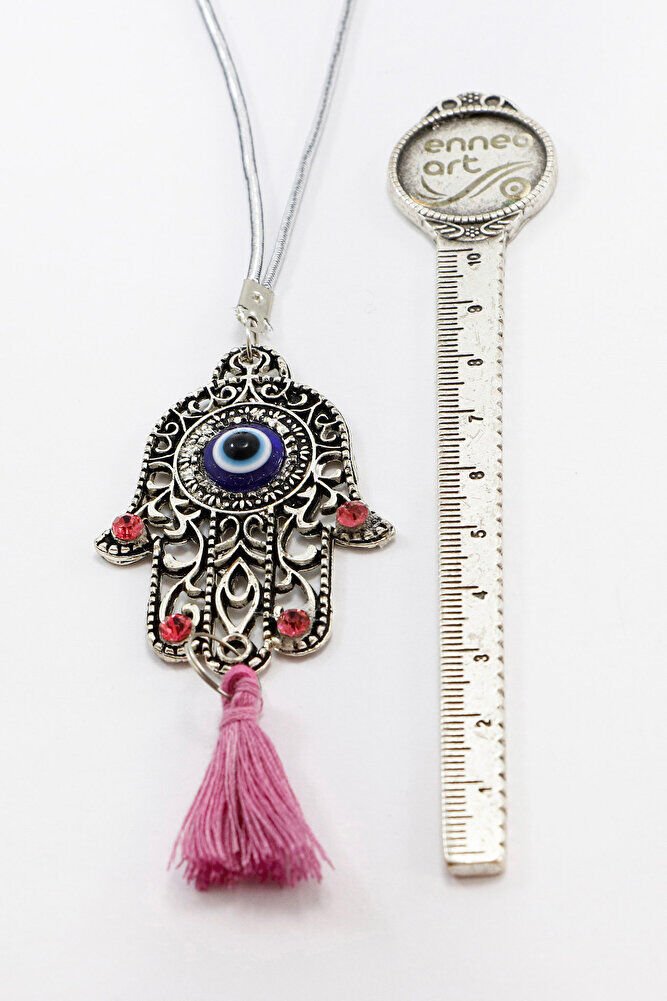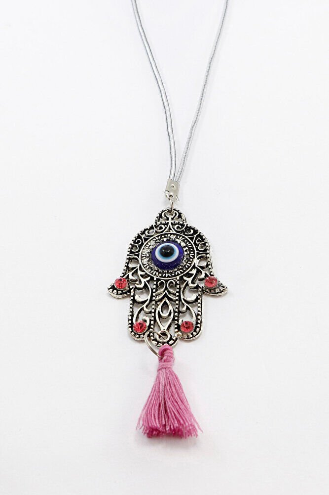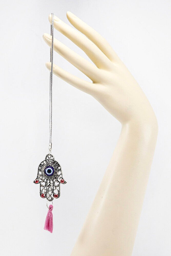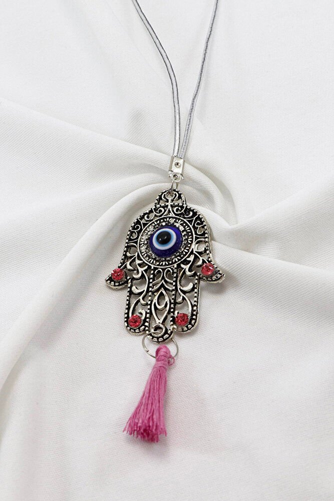 Pink Shiny Stone Tasseled Hamsa Hand Figured Car Rearview Mirror Ornament, Car Gift