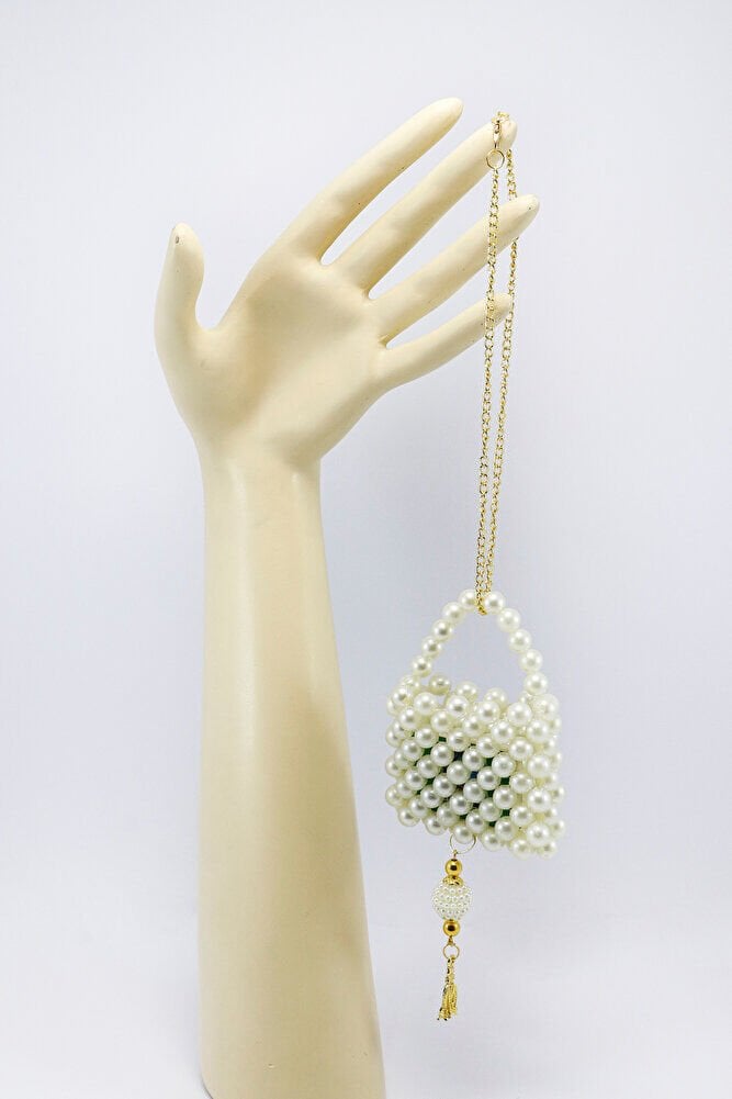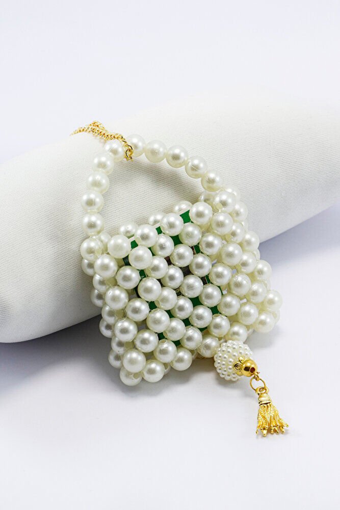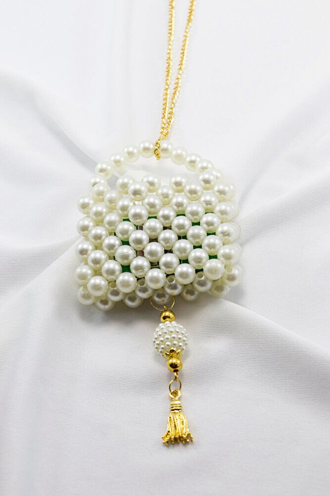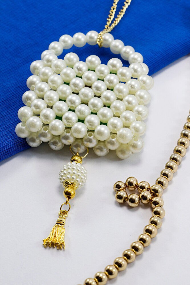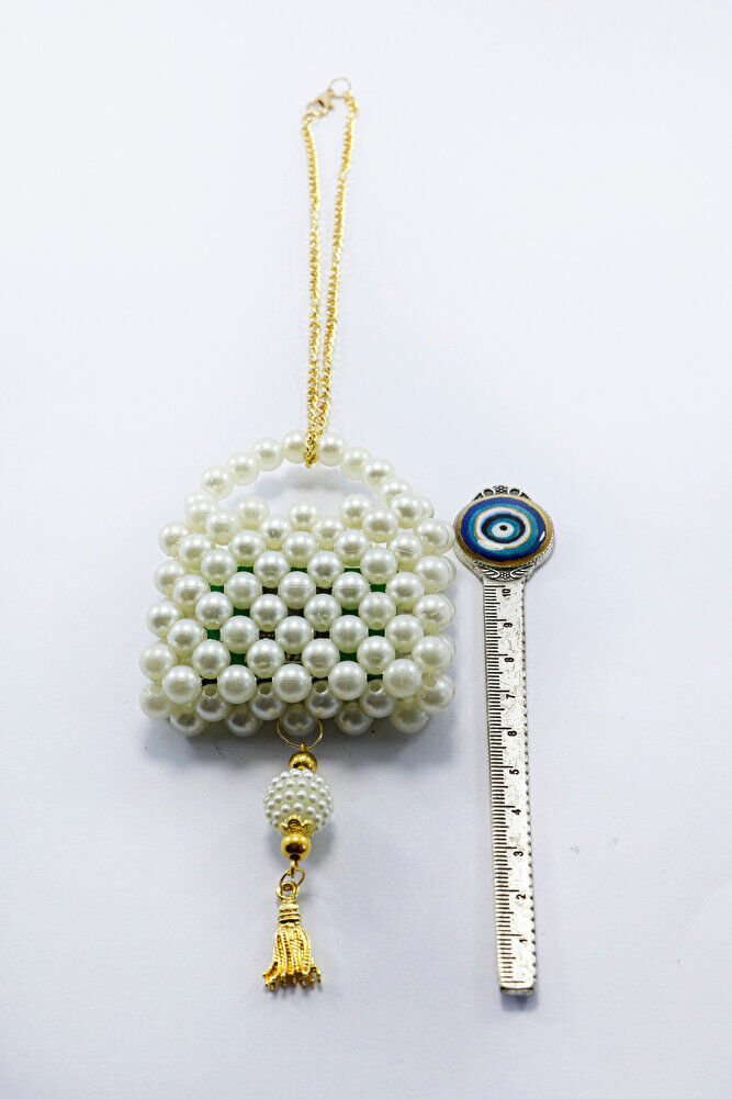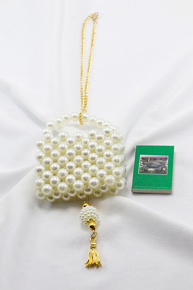 Püsküllü İncili Çanta Mini Kur'an-ı Kerim Zincirli Araba Dikiz Ayna Süsü