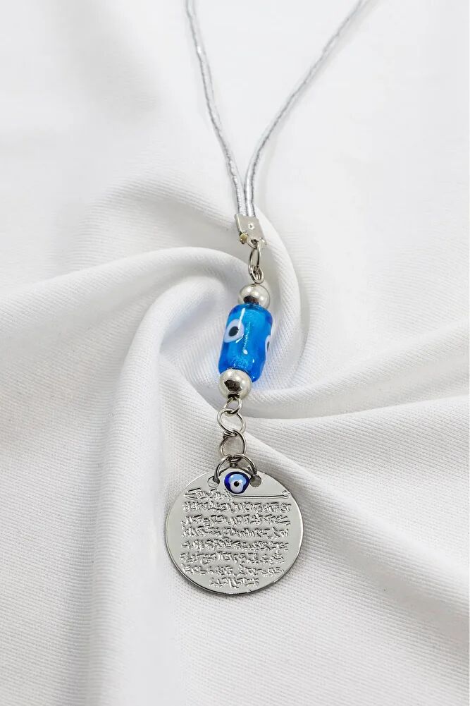ALL PRODUCT PHOTOGRAPHS ARE THE BELONGINGS OF ENNEA ART AND ARE ORIGINAL WORKS.; UNAUTHORIZED USE, COPYING OR DISTRIBUTION IS STRICTLY PROHIBITED.; LEGAL ACTION WILL BE INITIATED IF NECESSARY.; Metal Ayetel Kürsi Plate is single-sided.; Ayetel Kürsi is also single-sided and measures 2.3 cm.; Its rope is elastic and can be easily attached to all model vehicles.; The product is silver colored.; Ayetel Kürsi is the 255th verse of the Surah Al-Baqara in the Quran and is considered by many to be a verse of high virtue.; According to some accepted beliefs, - It is thought to describe Allah's power, knowledge and all-encompassing existence, - It is accepted that it is read for spiritual protection, - It is believed to give a sense of peace and security.; These meanings may vary according to personal beliefs and religious interpretations.;