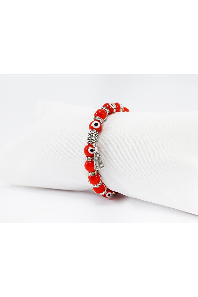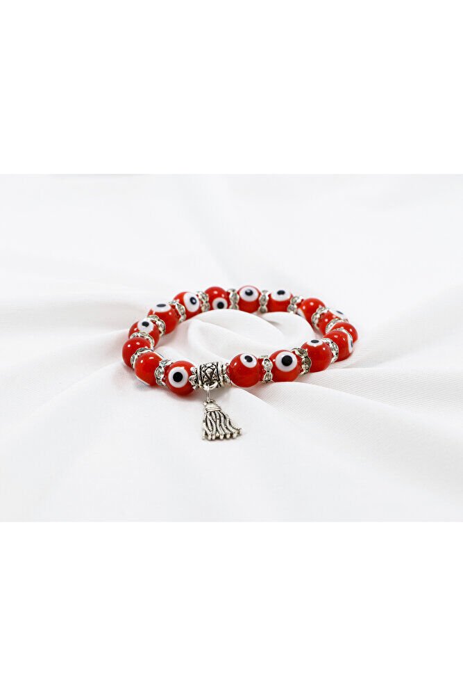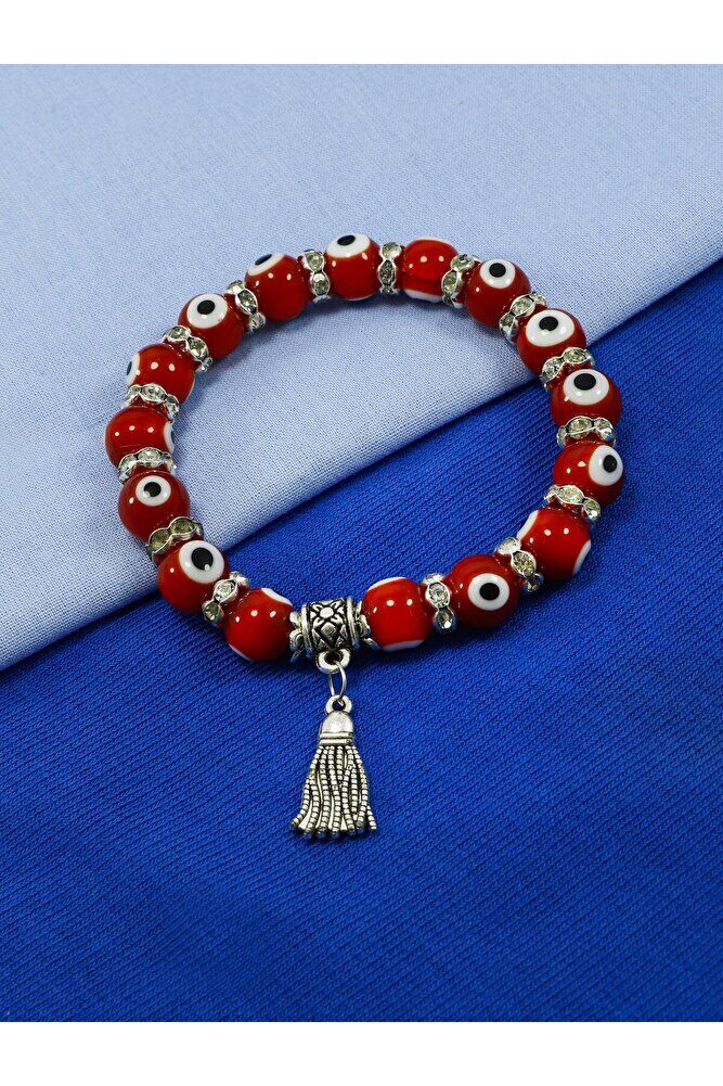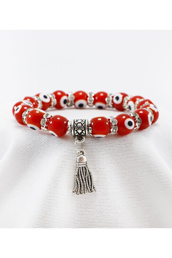 Red Handmade Glass Evil Eye Beaded Tassel Bracelet, Evil Eye Beaded Bracelet for Gift