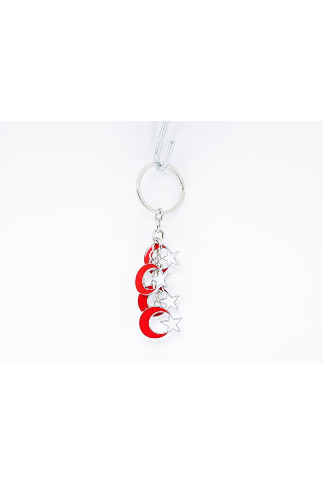 Red Metal Crescent Star Keychain, Gift Crescent Star Bag Ornament