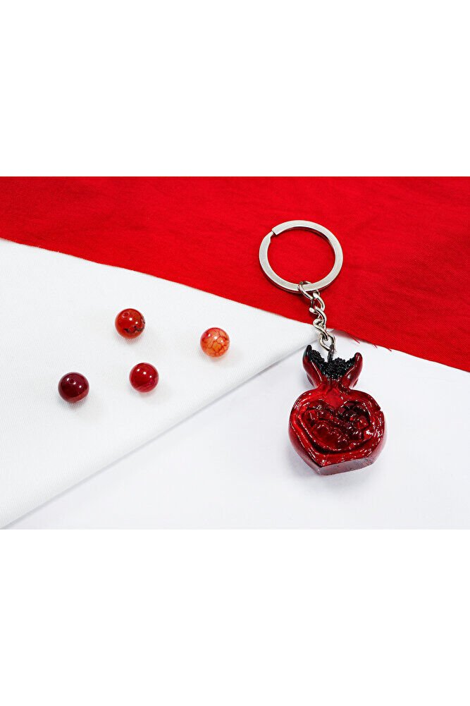 Red Pomegranate Figured Abundance, Fertility Symbol Keychain, Gift Bag Ornament