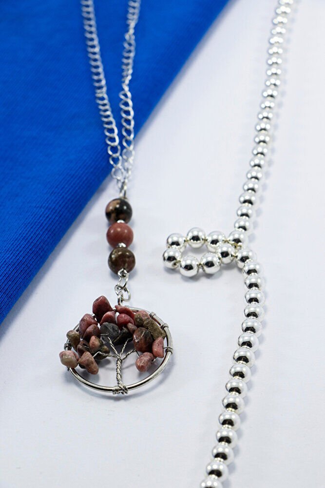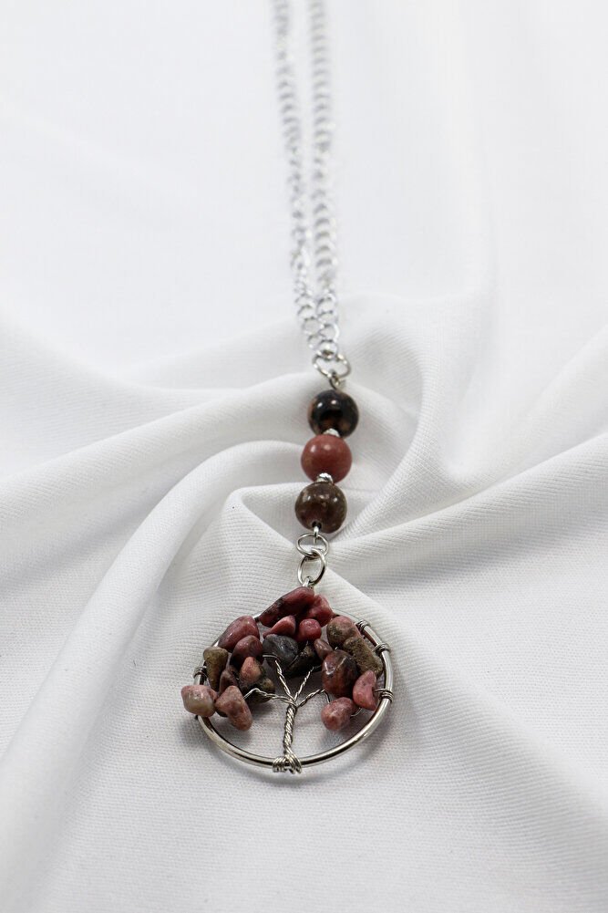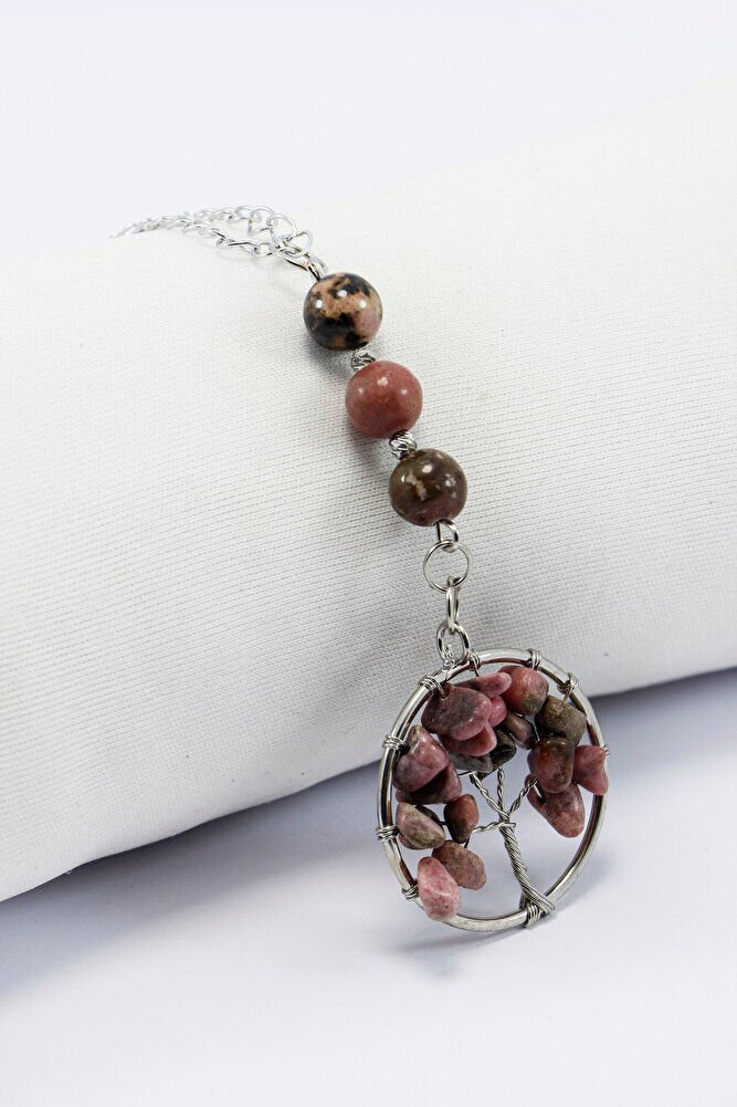 Rodonit Taşlı Yaşam Ağacı Araba Dikiz Ayna Süsü, Rodonit Taşlı Araba Hediyesi