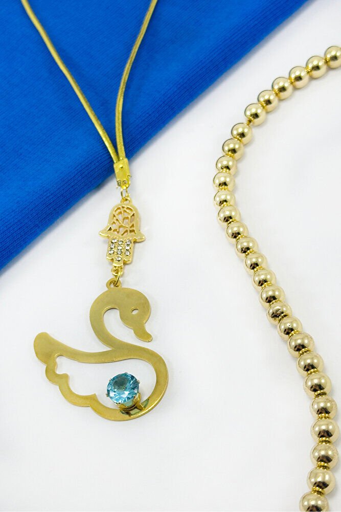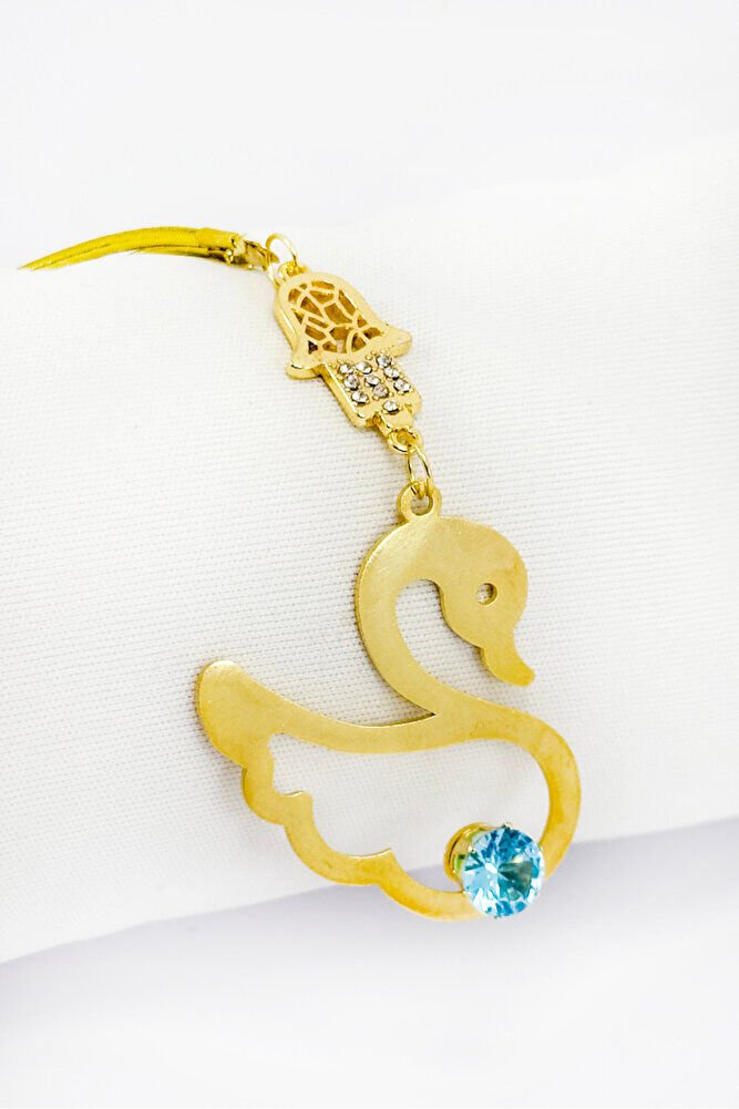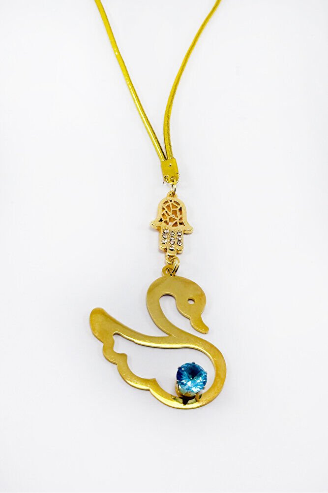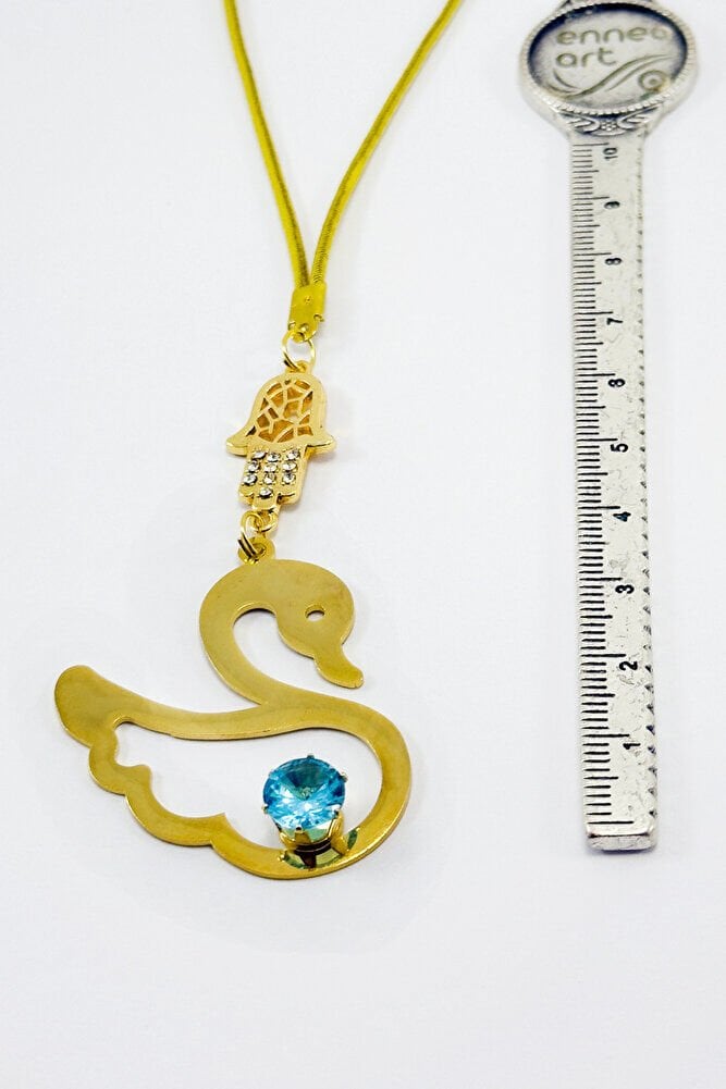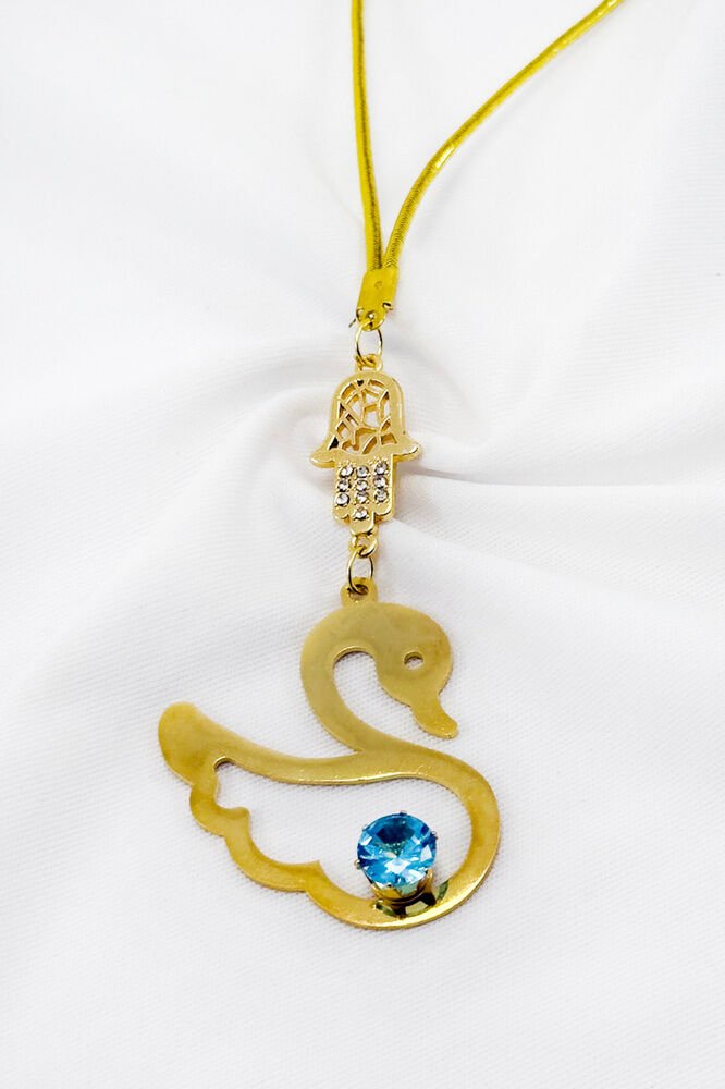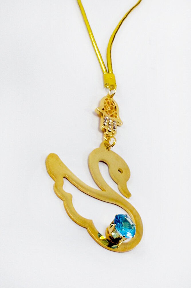 Shiny Stone Hamsa Hand Stainless Steel Swan Figured Car Rearview Mirror Ornament, New Car Gift