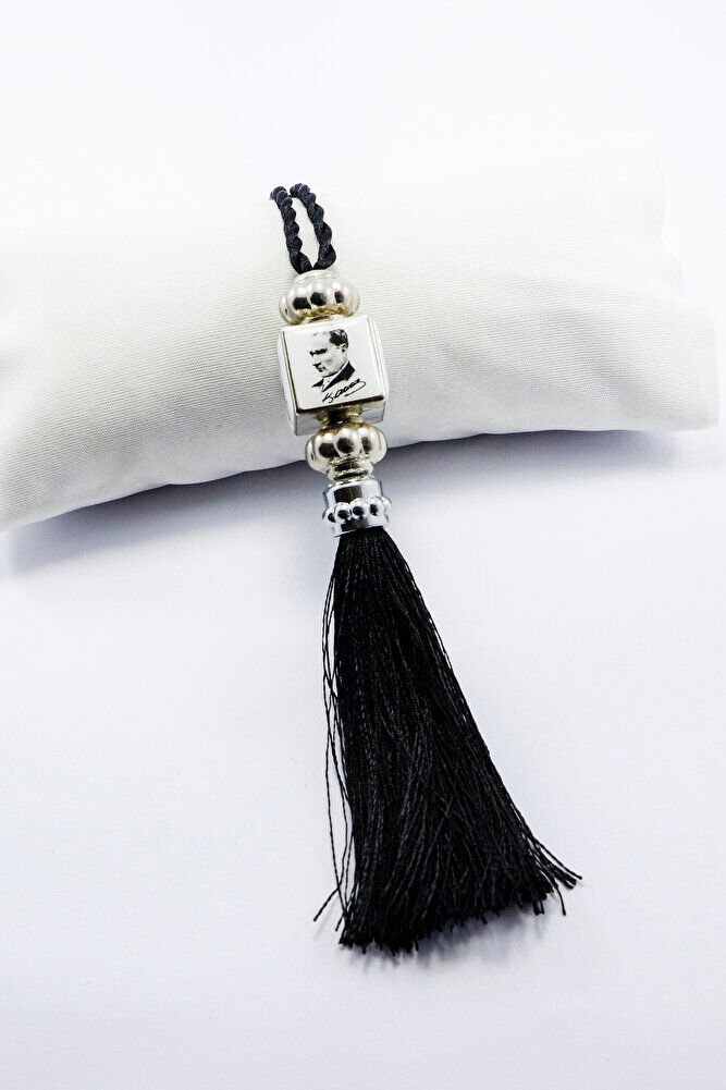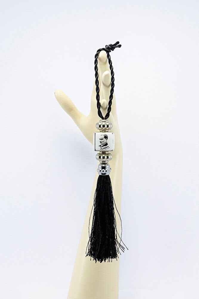 Siyah Beyaz Mustafa Kemal Atatürk Araba Dikiz Ayna Süsü, Püsküllü Araba Dekoru