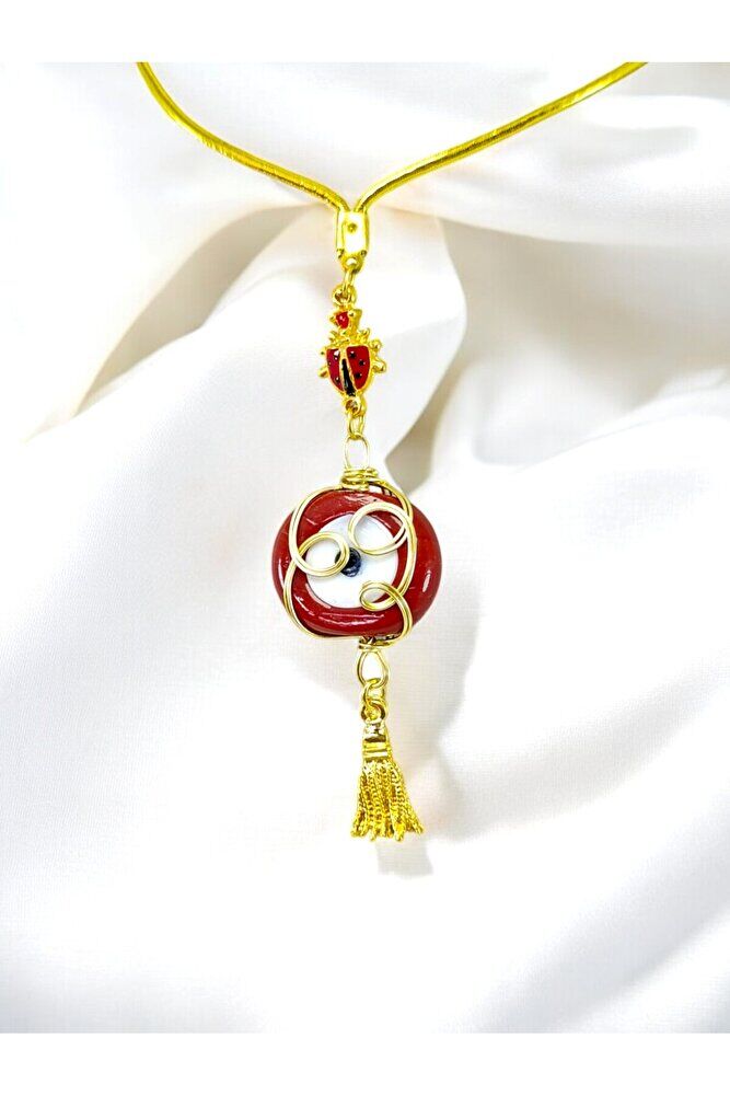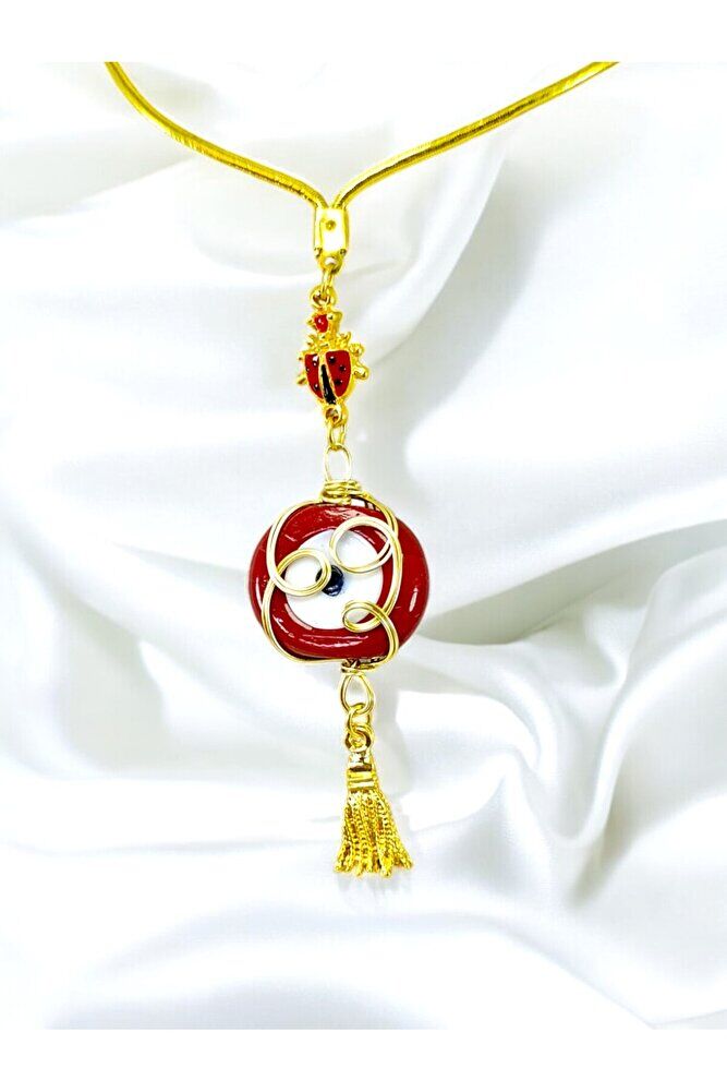 Küçük Uğur Böcekli Sarma Kırmızı Dana Gözü Araba Dikiz Ayna Süsü, Püsküllü Araba Hediyesi