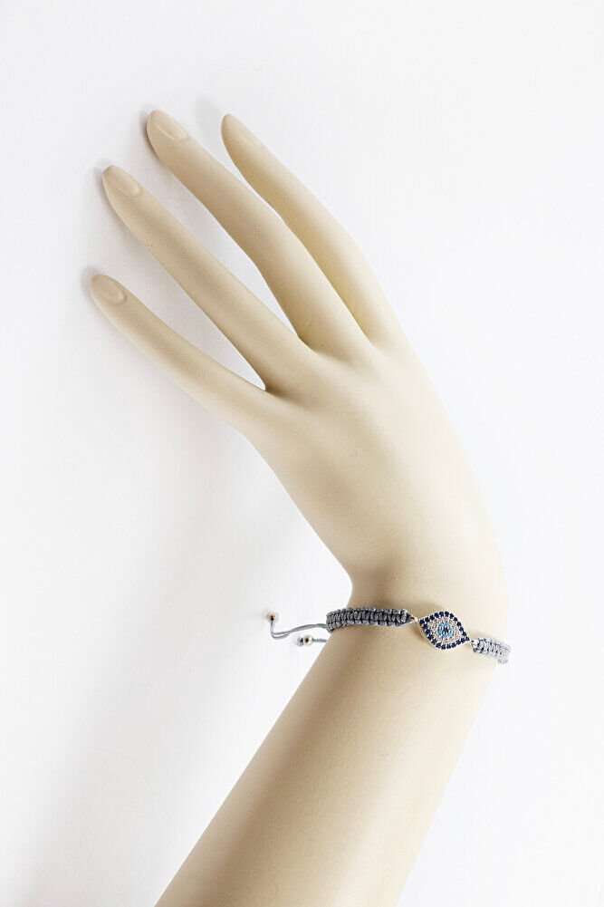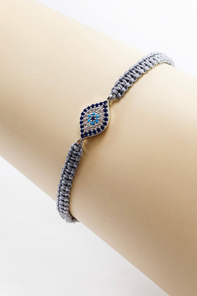Smoke Color Silver Ellipse Zircon Stone Evil Eye Bracelet, Gift Bracelet