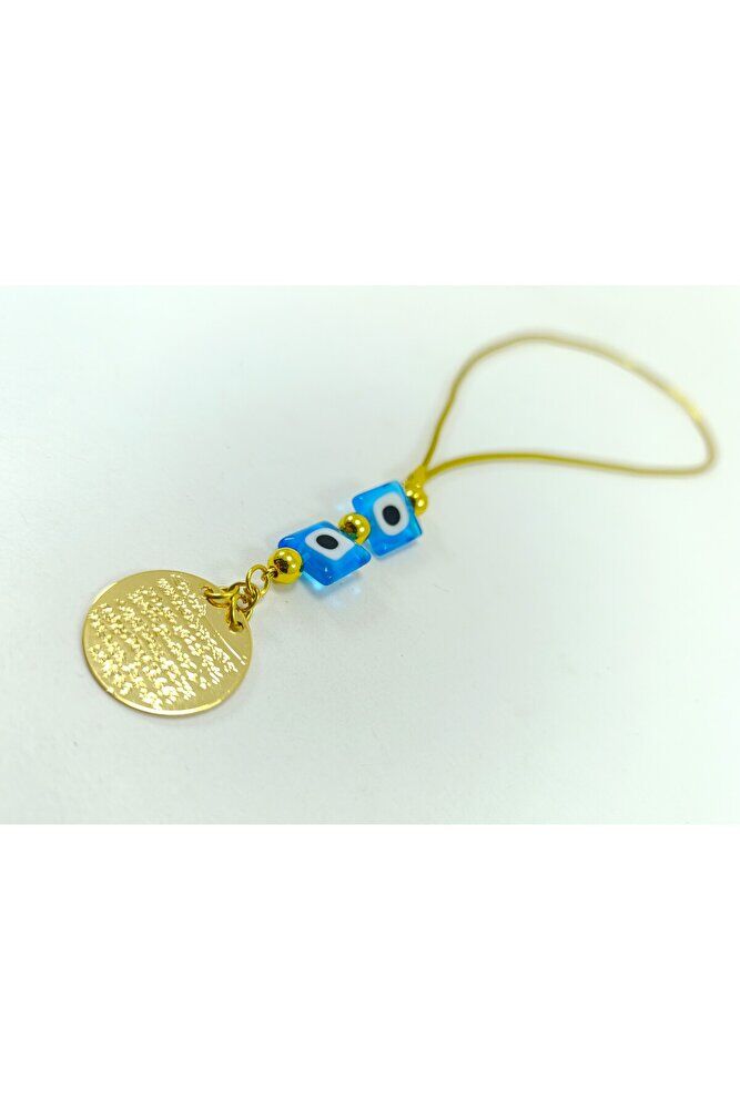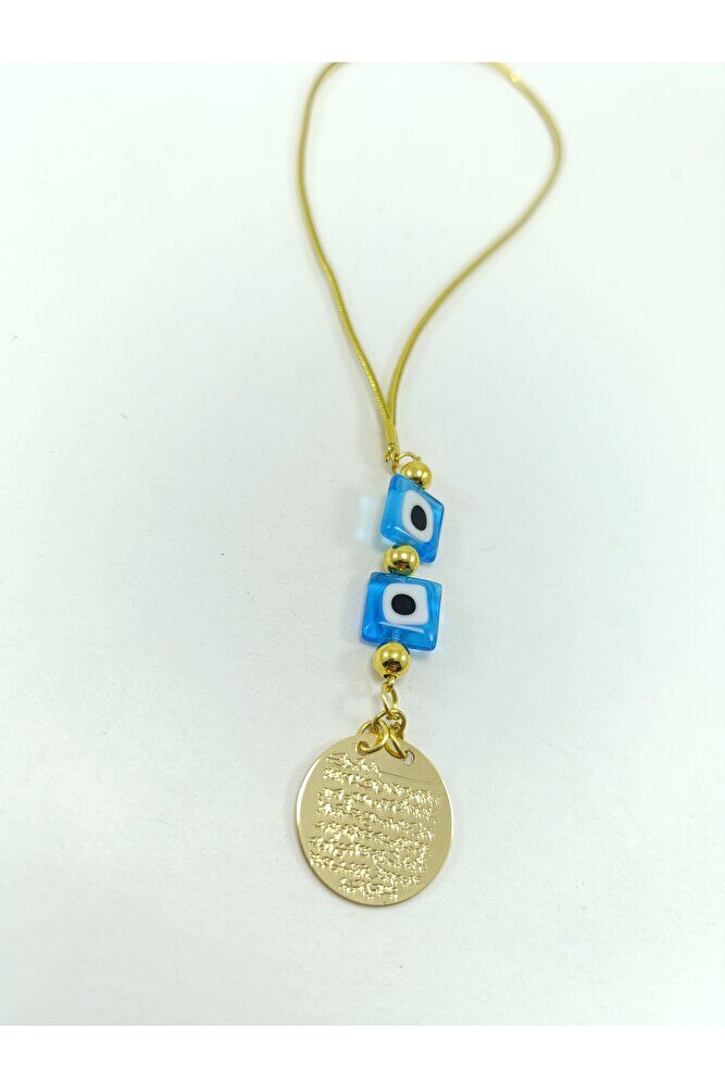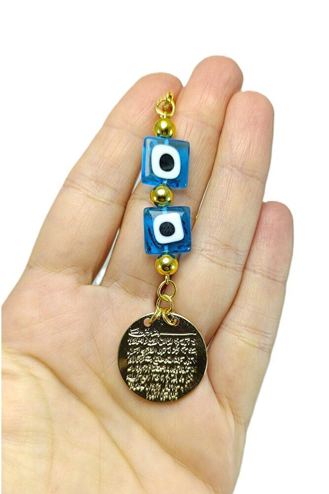 Kare Nazar Boncuğu Araba Dikiz Ayna Süsü Metal Ayetel Kürsi, Turkuaz Lüks Yeni Araba Hediyesi