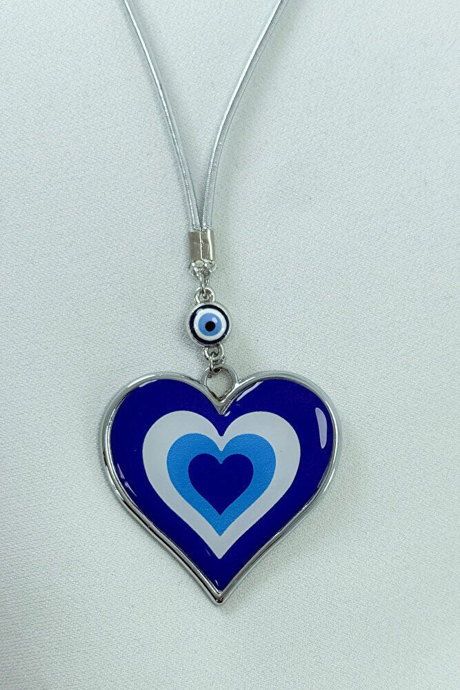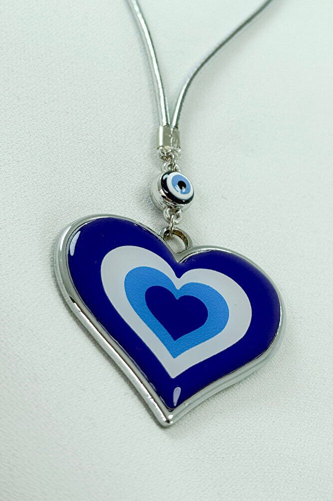 Steel Framed Naza Bead Double Sided Evil Eye Heart Car Rearview Mirror Ornament / New Car Gift
