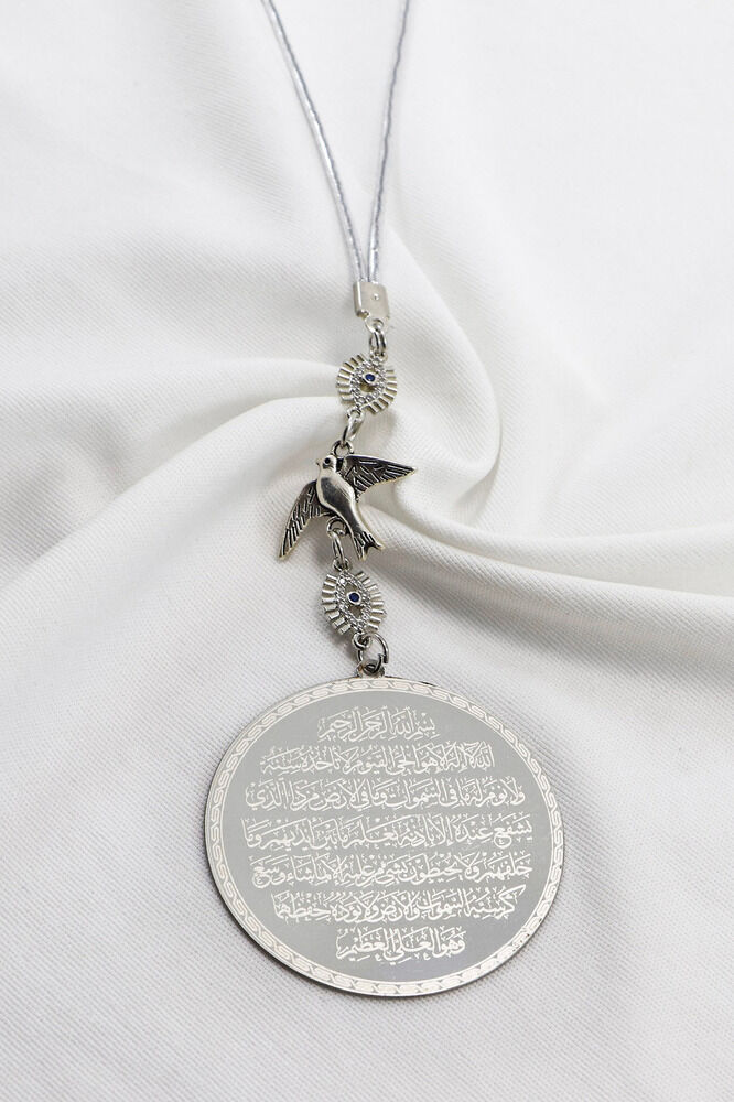 Tiny Eye Figured Bird Stainless Steel Ayetel Kursi Evil Eye Verse Car Rearview Mirror Ornament (4.5cm Plate)