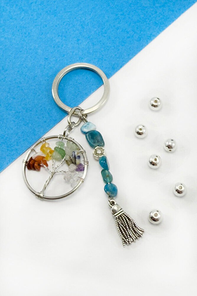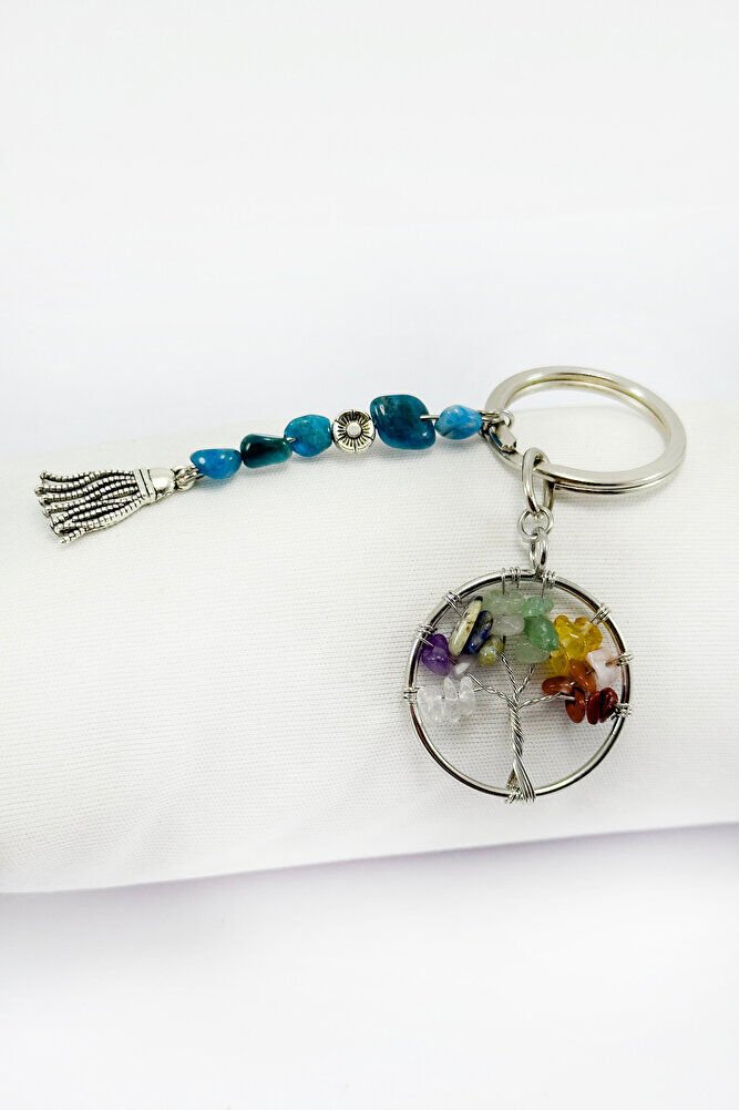 Salkım Doğal Taşlı Hayat Ağacı Anahtarlık, Hediyelik Anahtarlık