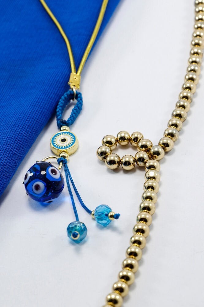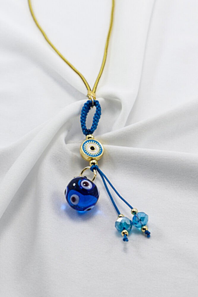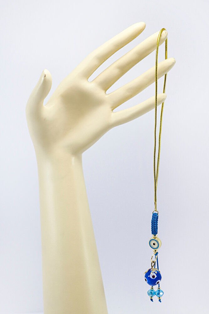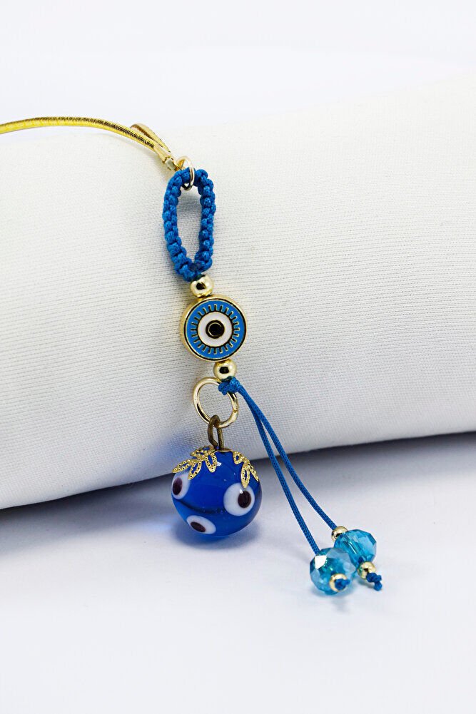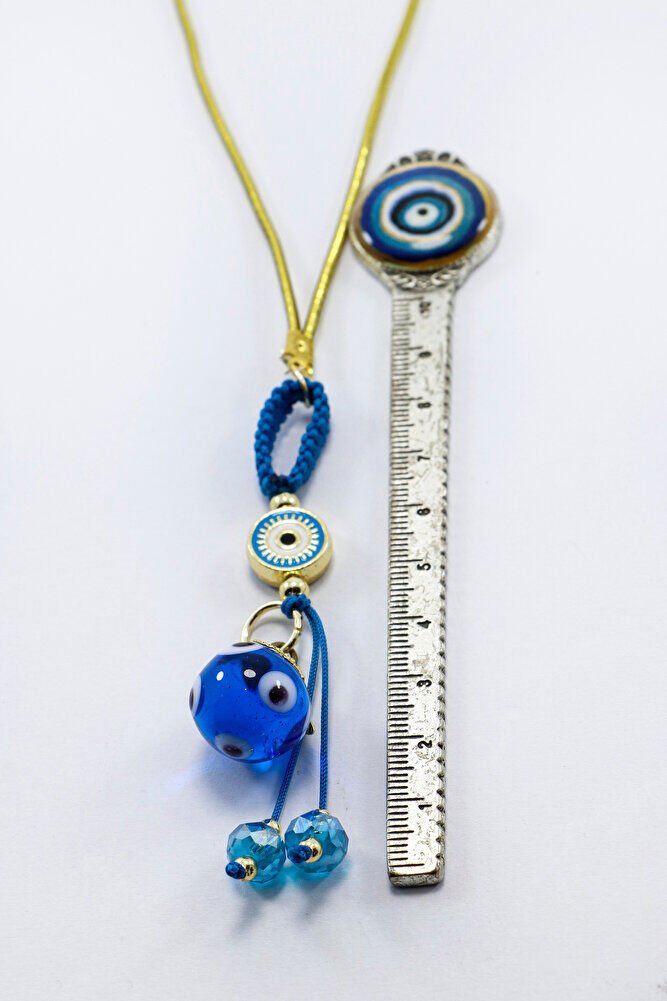 Turkuaz Çok Gözlü Nazar Boncuklu Özel Tasarım Elastik İpli Dikiz Ayna Süsü, Yeni Araba Hediyesi