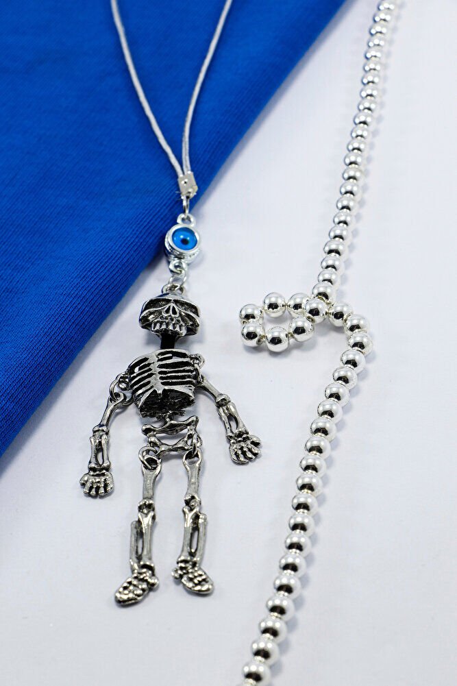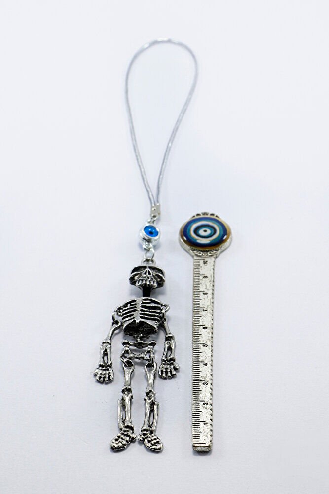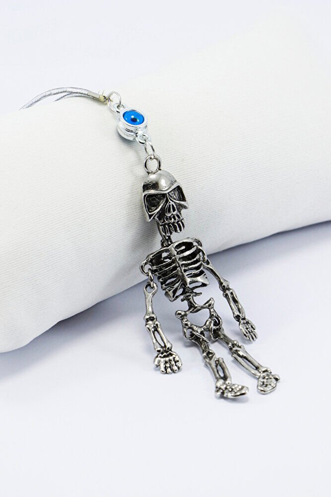 Turkuaz Nazar Boncuğu Metal Hareketli İskelet Araba Süsü, Dikiz Ayna Süsü