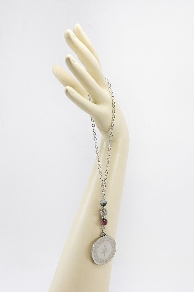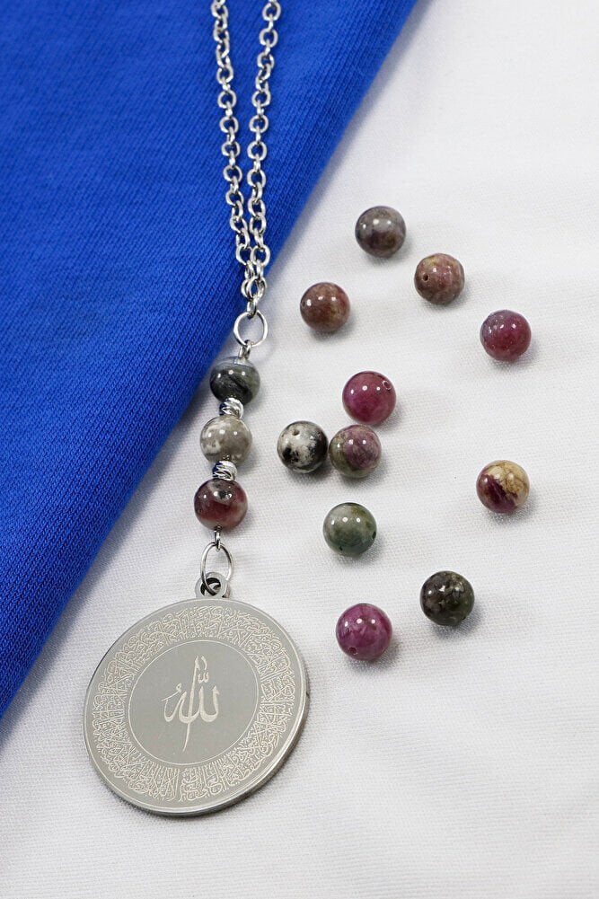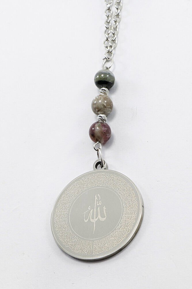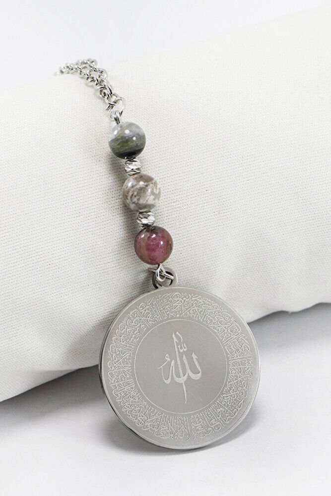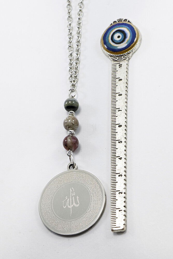 Turmalin Doğal Taşı Gri 316L Paslanmaz Çelik Ayetel Kürsi Felak Nas İhlas Araba Dikiz Ayna Süsü
