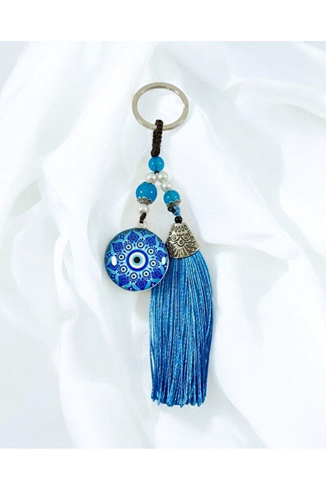 Turkuaz Nazar Boncuklu Epoksi Anahtarlık, El Yapımı Hediyelik Aksesuar