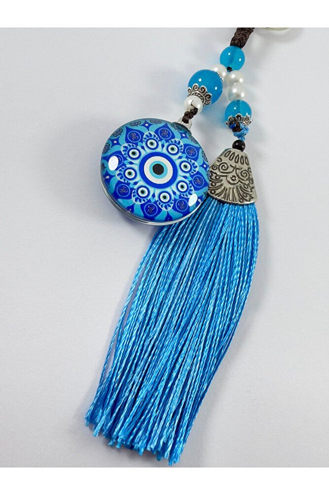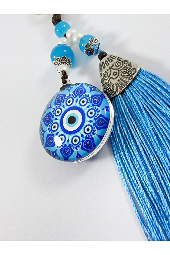 The product is handmade.; It is double-sided.; The large bead is epoxy.; It is 3 cm in diameter.; The entire accessory is 16 cm.; The evil eye bead is a powerful symbol believed to balance energy and protect from negative glances.; It is a meaningful talisman for those seeking spiritual protection and inner peace.;
