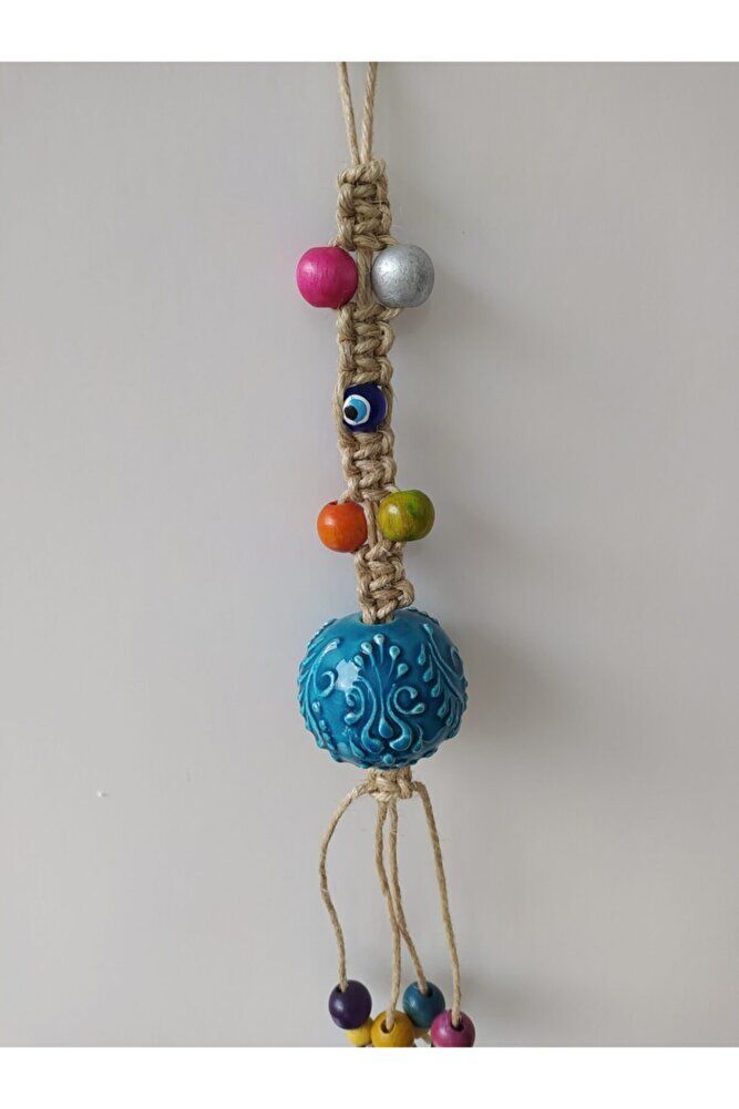 Decorated with handmade macrame details, the turquoise colored ceramic sphere adds elegance and an authentic touch to your walls; Thanks to its high-quality ceramic material, it offers long-lasting use and its colors do not fade; This decorative object, which can also be used as an amulet, helps balance the energy of your home while providing an aesthetic appearance; The design enriched with macrame workmanship easily adapts to any wall decoration and adds a unique atmosphere to your space;