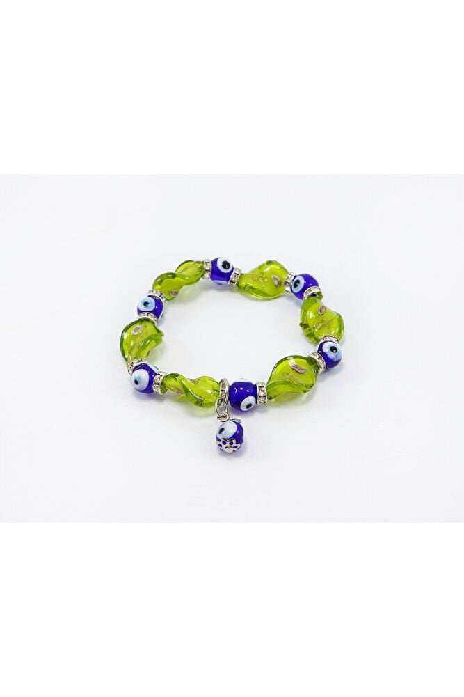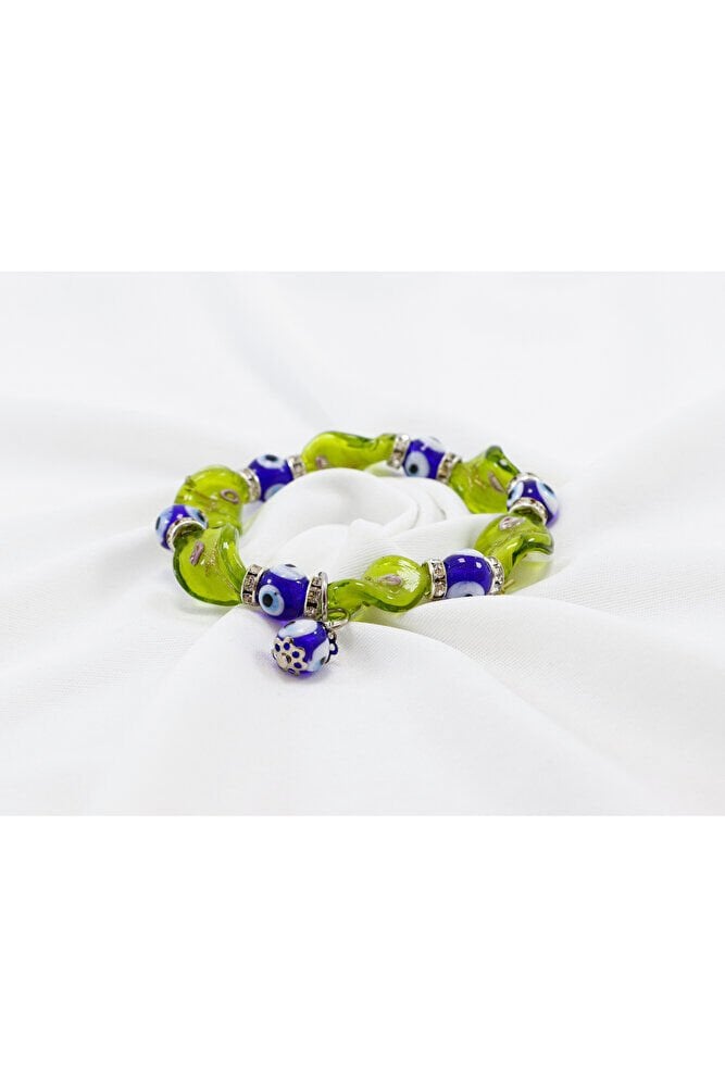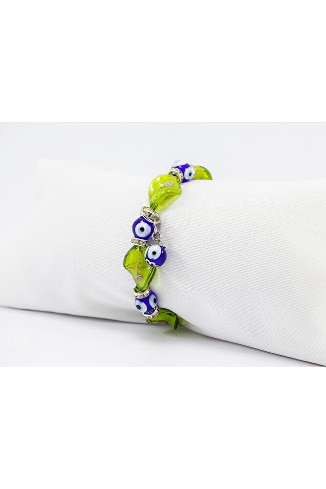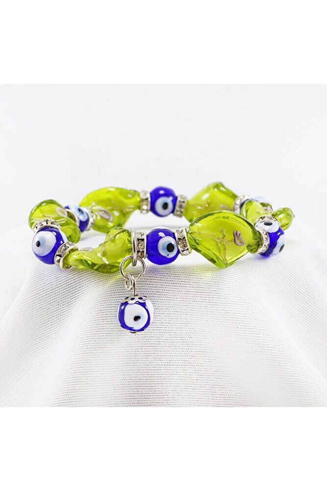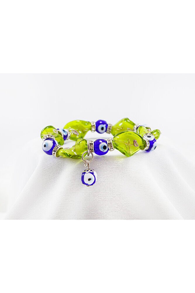 Sarı El Yapımı Cam Boncuklu Nazar Boncuğu Bileklik, Hediyelik Nazar Boncuklu Bileklik