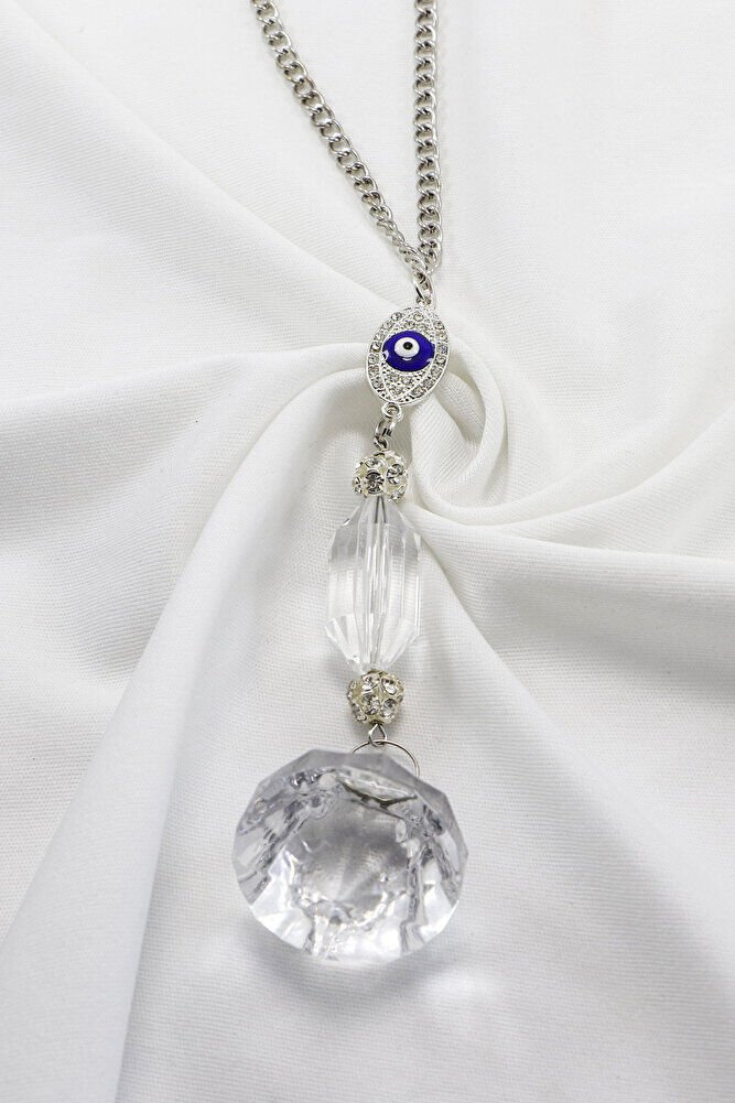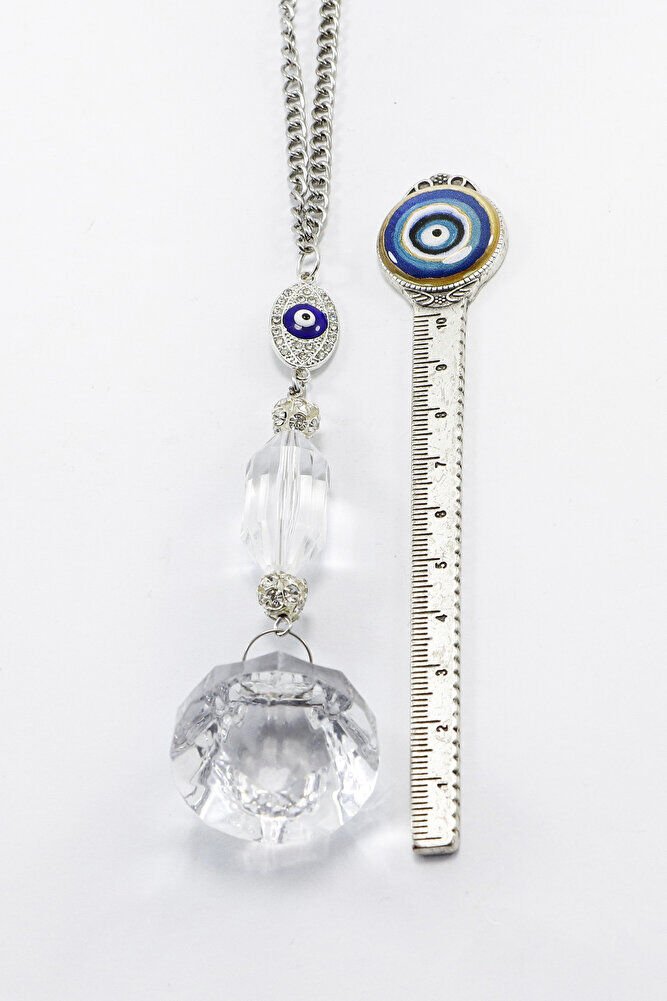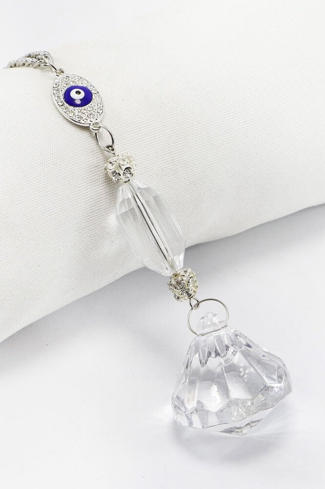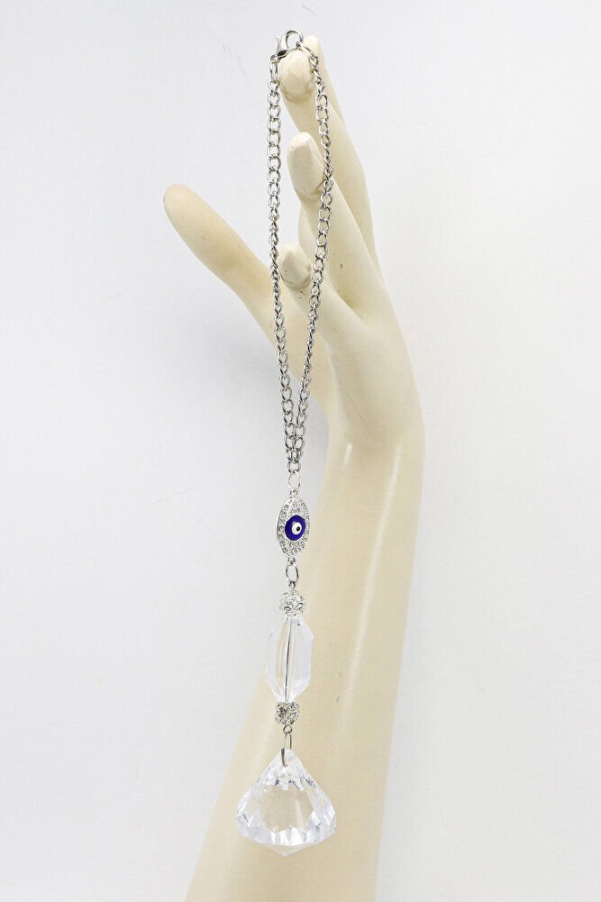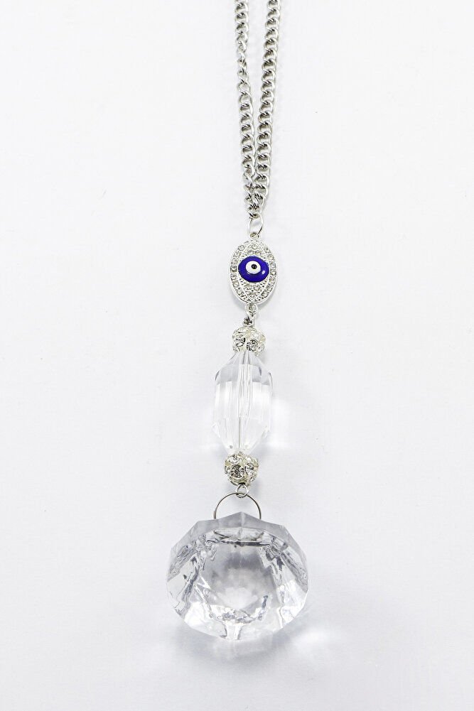 Zirkon Taşlı Nazarlı Şeffaf Elmas Figürlü Boncuklu Dikiz Ayna Süsü, Yeni Araba Hediyesi