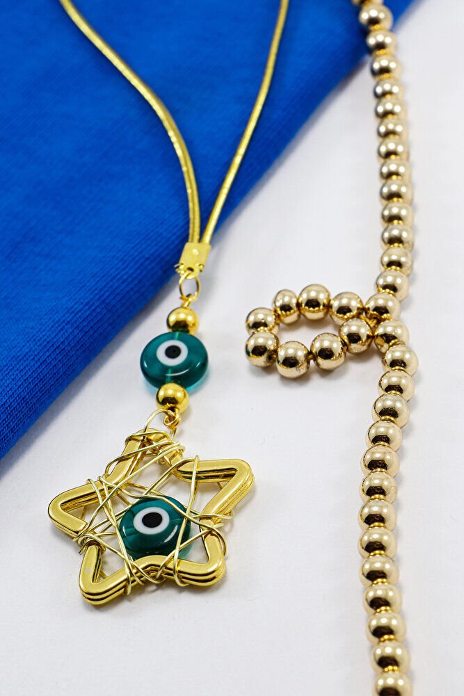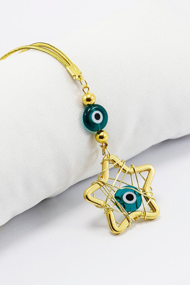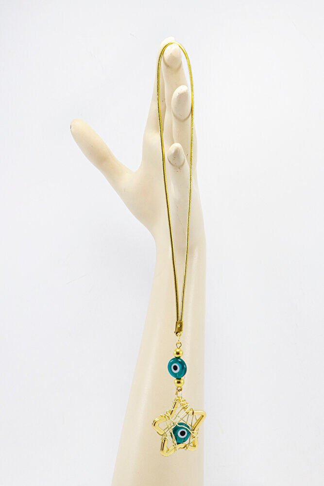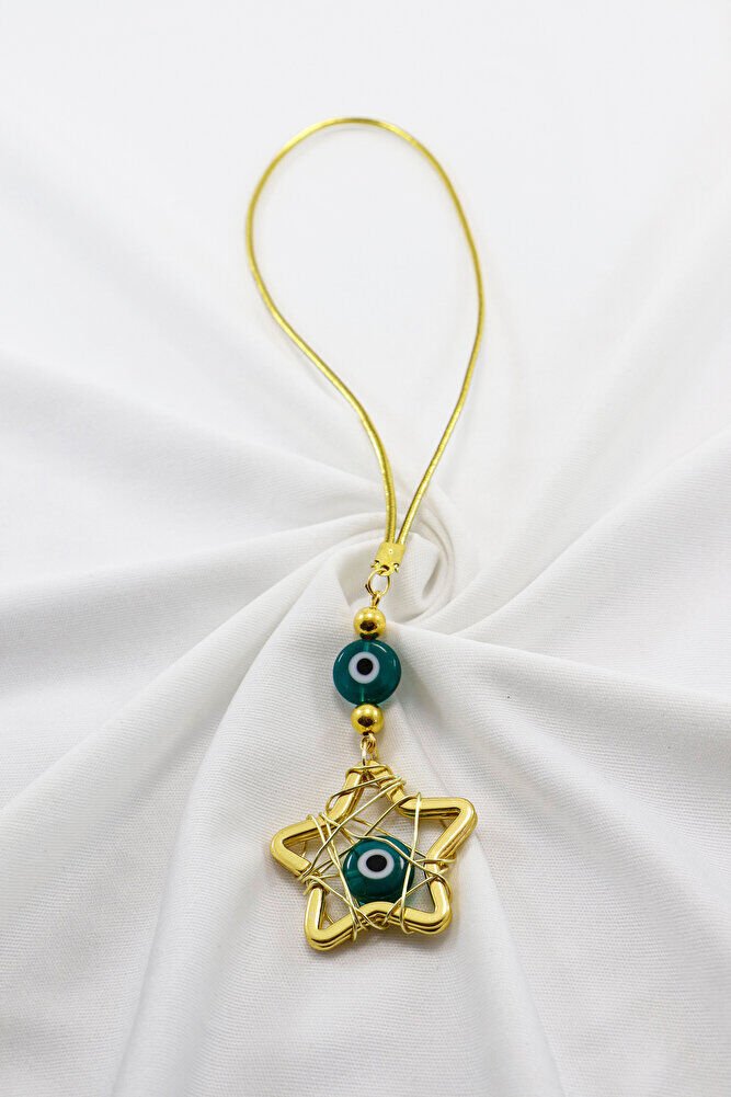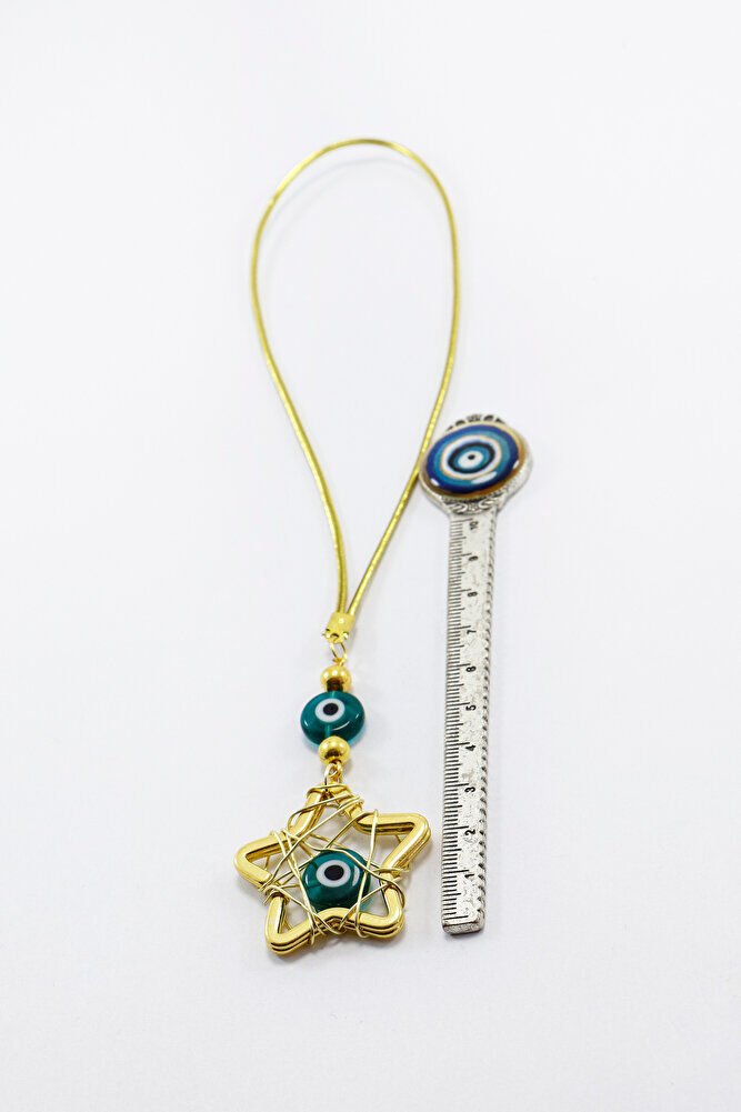 Zümrüt Yeşili Cam Nazar Boncuklu Metal Örgülü Yıldız Dikiz Ayna Süsü / Yılbaşı Ağacı Süsü