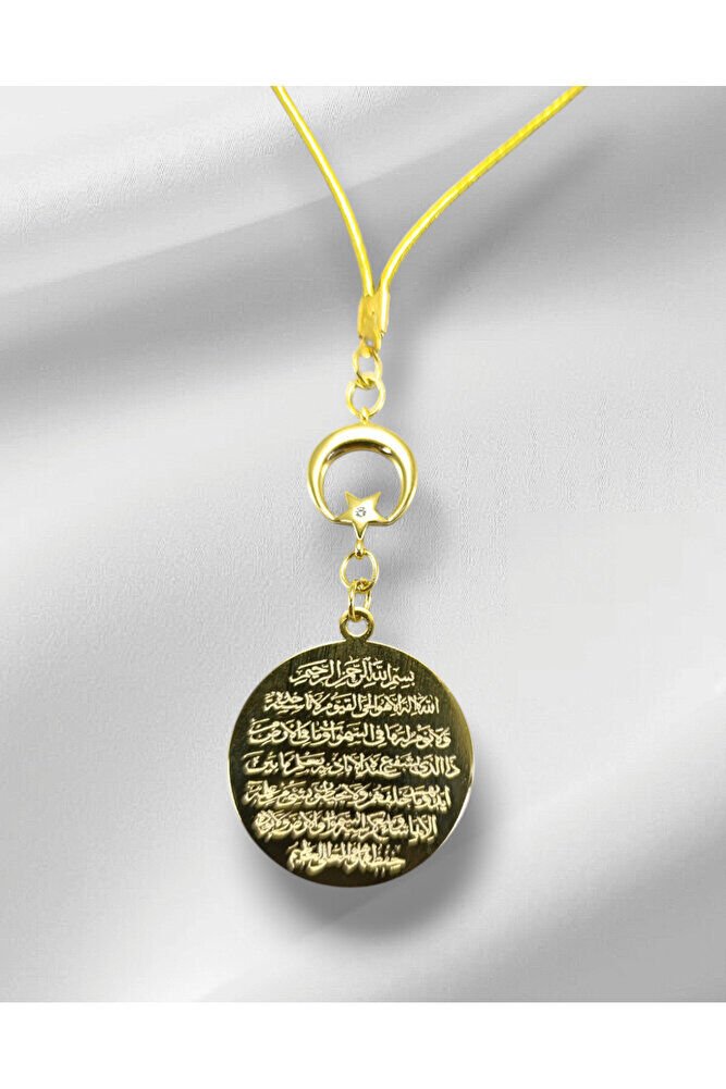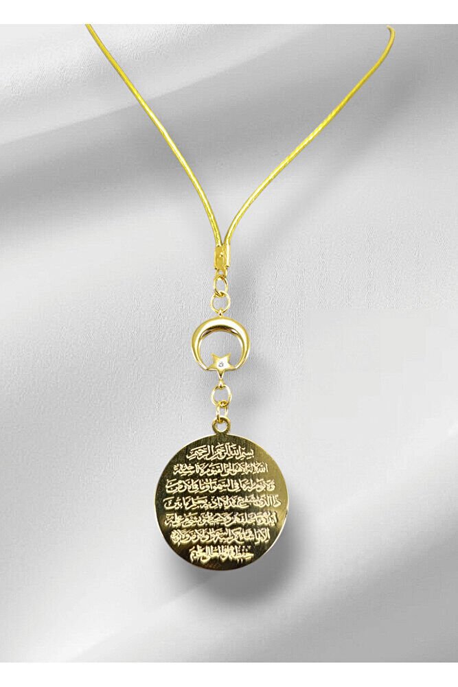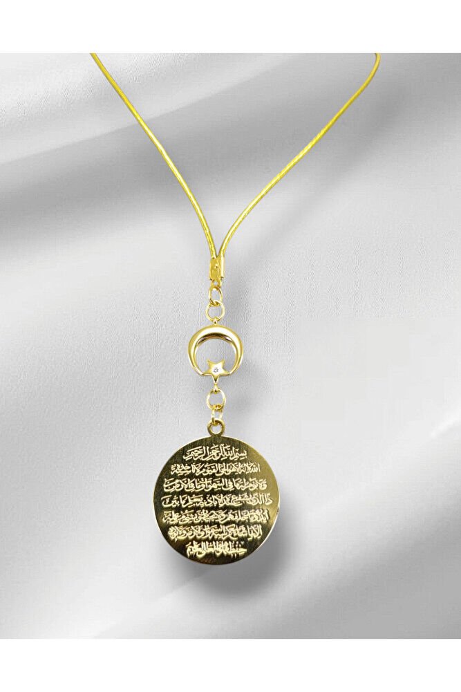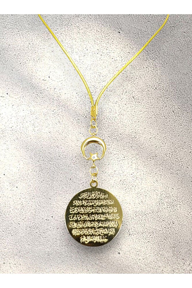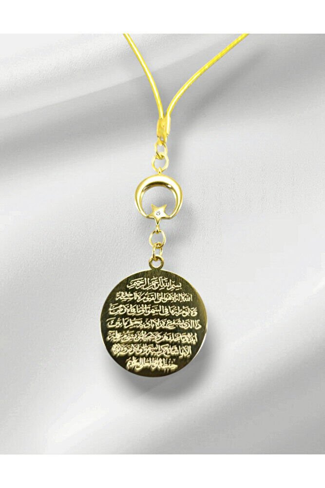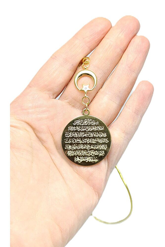 Altın Kaplama Ayetel Kürsi Tek Taşlı Hilal Araba Dikiz Ayna Süsü, Lüks Yeni Araba Hediyesi