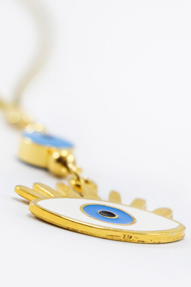 Ürün altın kaplamadır.; İpi lastiklidir lastikli olduğu için her model araca rahatlıkla takılabilmektedir.; Nazarlı göz tek taraflıdır.;