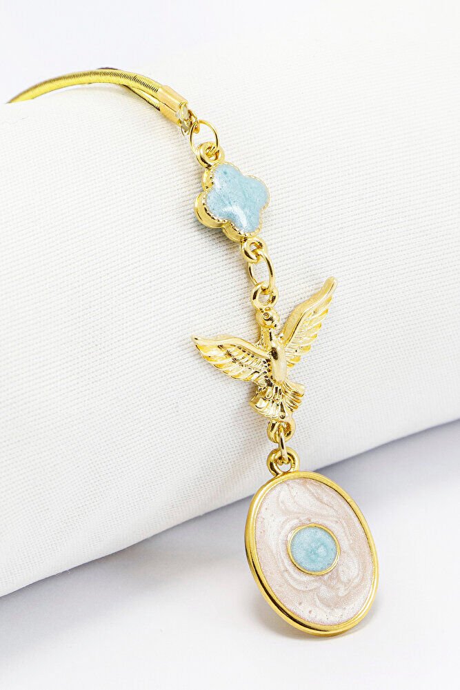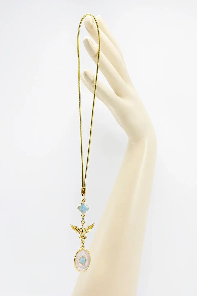 Altın Kaplama Mavi Çiçekli Uçan Anka Kuşu Sedefli Dikiz Ayna Süsü Tarz Yeni Araba Hediyesi