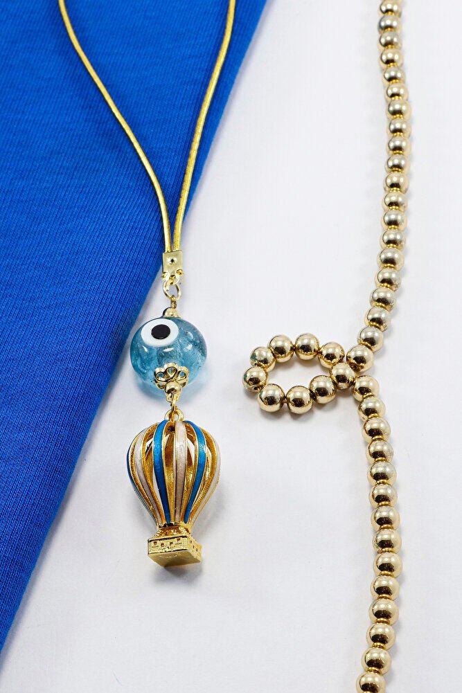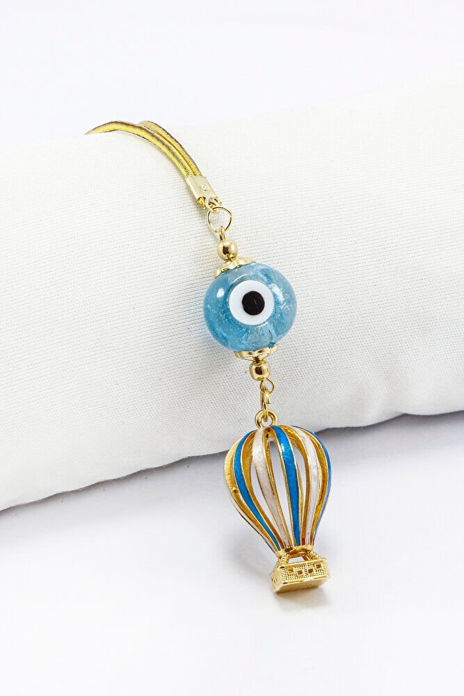 Altın Kaplama Uçan Balon Mavi cam Nazar Boncuğu Dikiz Ayna Süsü, Tarz Yeni Araba Hediyesi