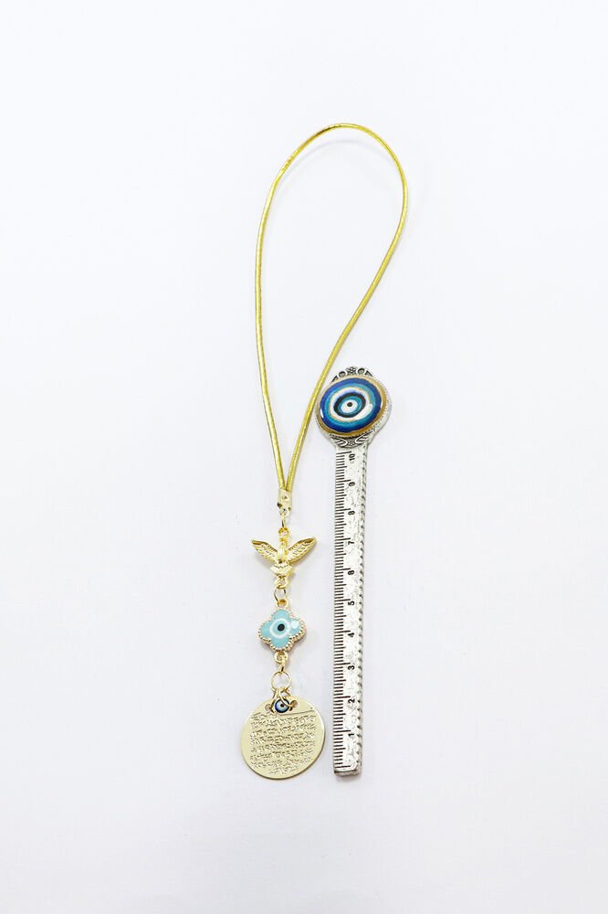 Ürün el yapımıdır.; ; Metalik ip esnektir.; ; El yapımı olduğu için ufak farklılık ve düzensizlikler olasıdır.; ; Metal üzerindeki nazar boncuğu el boyamadır.; ; Türk kültüründe geleneksel olarak"nazar boncuğu" olarak bilinen bu güçlü sembolün kötülükleri savuşturduğuna ve iyi şans getirdiğine inanılır.; ; Nazar boncuğunu, müşterilerimize duvar süsü, anahtarlık, araba aksesuarı, kapı süsü, magnet gibi farklı formatlarda sunuyoruz.; Pozitif enerji getirmek ve nazardan korumak için evinize, arabanıza veya ofisinize asın.; ; Nazar tılsımının dünyadaki çeşitli kültürlerde farklı isimleri vardır.; ; Arapça'da "aynal-hasud" veya "haset gözü", Yunanca'da "mati" olarak bilinir.; ; Adı ne olursa olsun, nazar boncuğunun gücüne olan inanç evrenseldir.;
