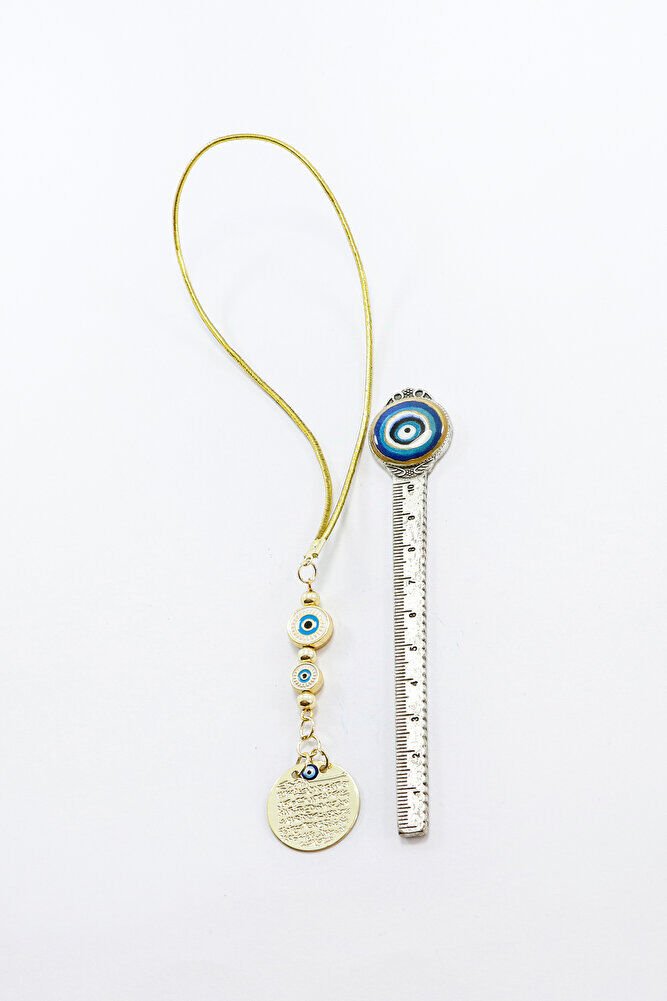 Ürün el yapımıdır.; ; Metalik ip esnektir.; ; El yapımı olduğu için ufak farklılık ve düzensizlikler olasıdır.; ; Nazar boncukları metaldir.; ; Türk kültüründe geleneksel olarak"nazar boncuğu" olarak bilinen bu güçlü sembolün kötülükleri savuşturduğuna ve iyi şans getirdiğine inanılır.; ; Her cam boncuk yetenekli zanaatkarlar tarafından titizlikle işlenir ve bu her parçayı benzersiz kılar.; ; Nazar boncuğunu, müşterilerimize duvar süsü, anahtarlık, araba aksesuarı, kapı süsü, magnet gibi farklı formatlarda sunuyoruz.; Pozitif enerji getirmek ve nazardan korumak için evinize, arabanıza veya ofisinize asın.; ; Nazar tılsımının dünyadaki çeşitli kültürlerde farklı isimleri vardır.; ; Arapça'da "aynal-hasud" veya "haset gözü", Yunanca'da "mati" olarak bilinir.; ; Adı ne olursa olsun, nazar boncuğunun gücüne olan inanç evrenseldir.;