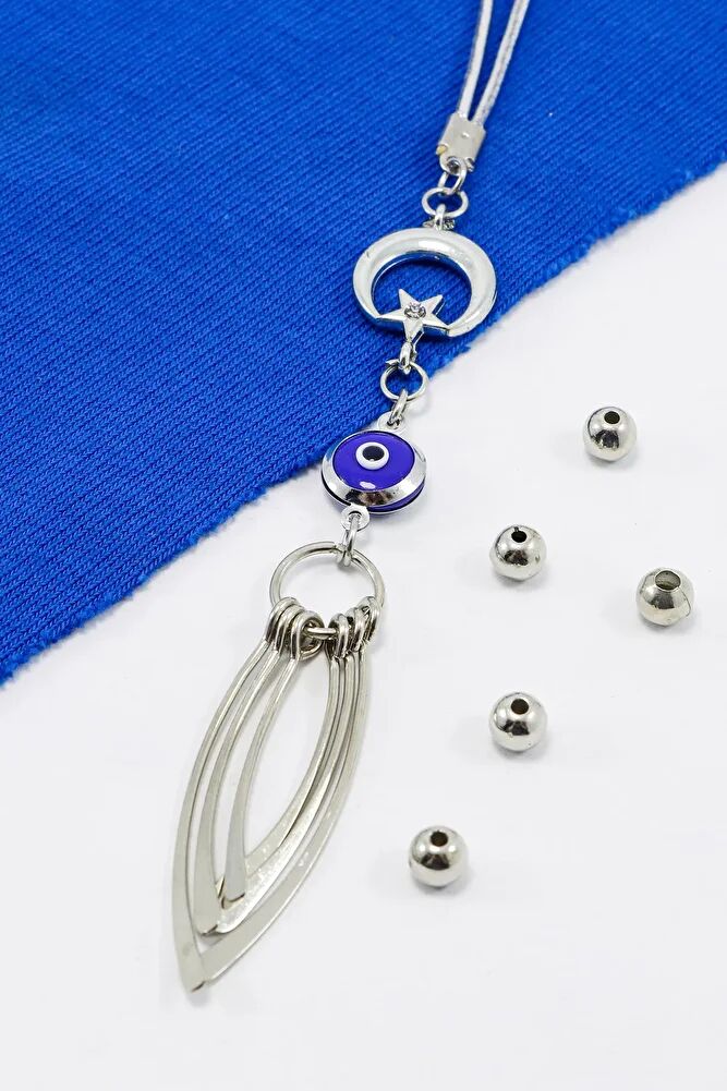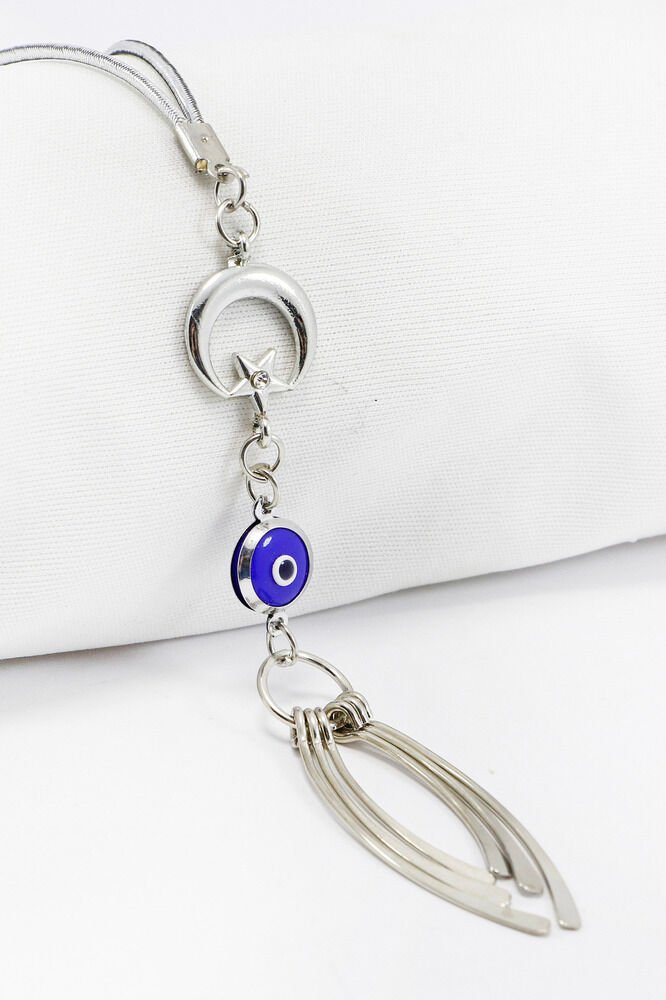 Ay Yıldızlı Çerçeveli Nazar Metal Püsküllü Araba Dikiz Ayna Süsü, Yeni Araba Hediyesi