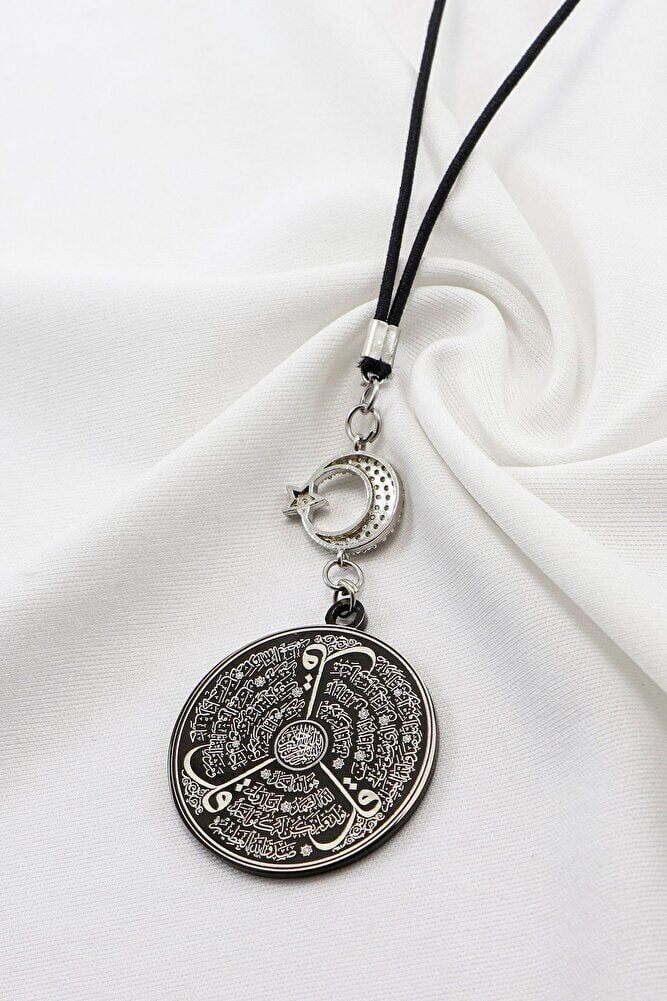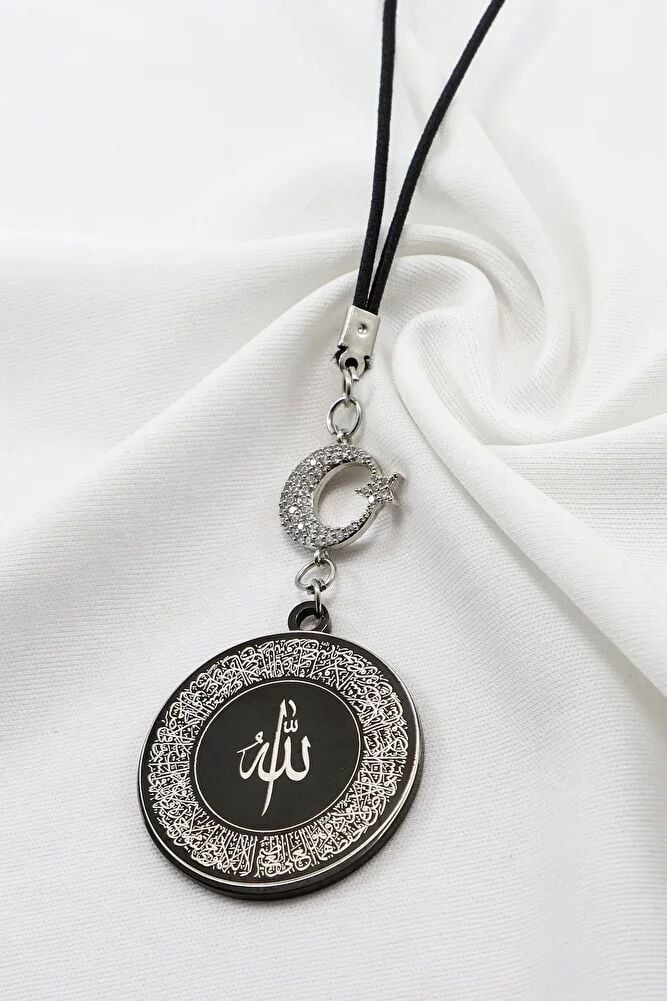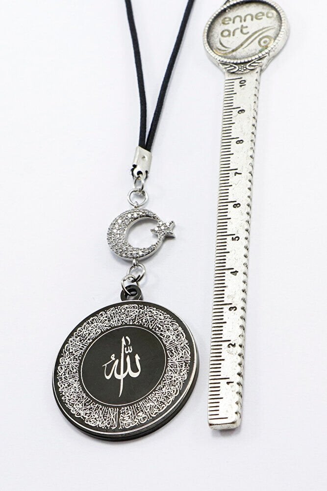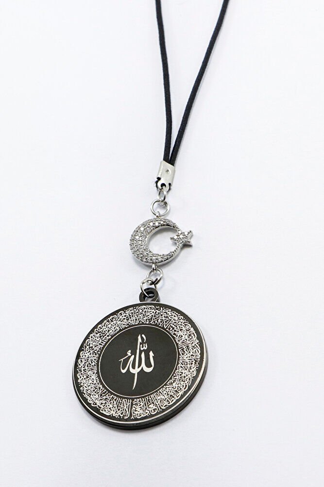 Ay Yıldızlı Siyah Ayetel Kürsi Allah Lafzı Felak Nas İhlas Dualı Paslanmaz Çelik Araba Ayna Süsü
