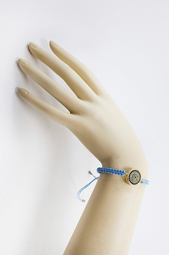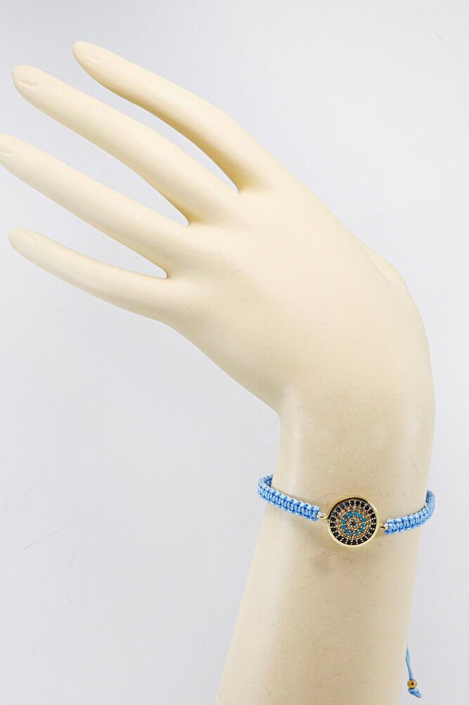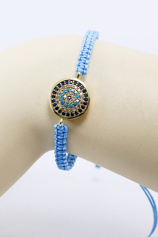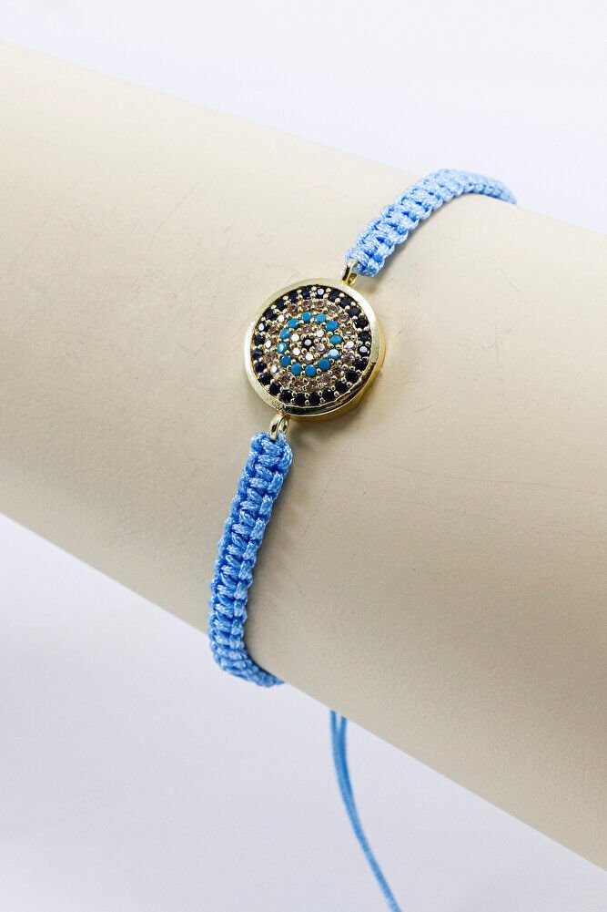 Bebe Mavisi Asansörlü Gold Zirkon Taşlı Nazar Bileklik, Hediyelik Bileklik