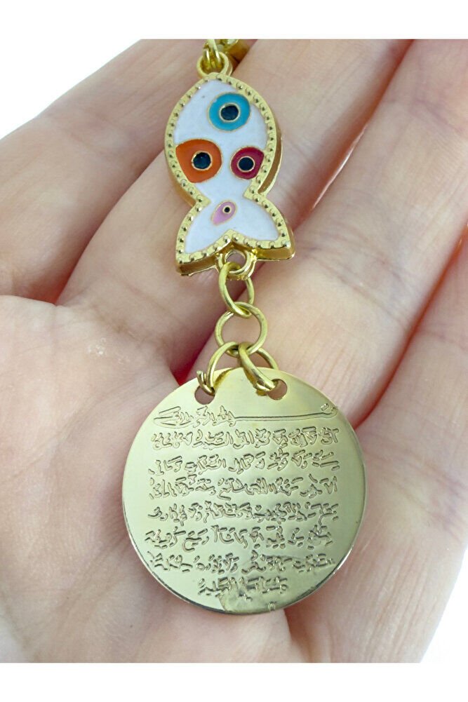 Beyaz Balık Gold Metal Ayetel Kürsi Araba Dikiz Ayna Süsü, Yeni Araba Hediyesi