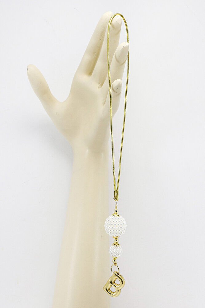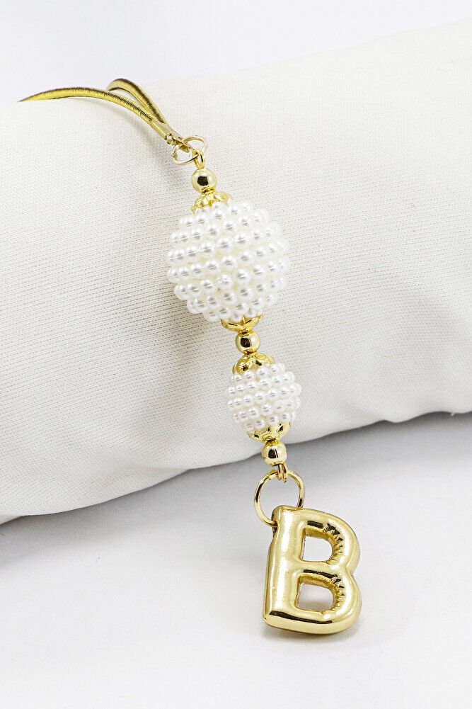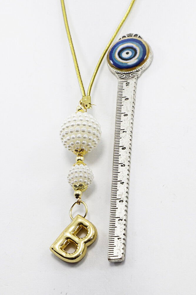 Beyaz İncili Böğürtlen Aksesuarlı Bombeli B Harfli Dikiz Ayna Süsü, Hediyelik Yeni Araba Hediyesi