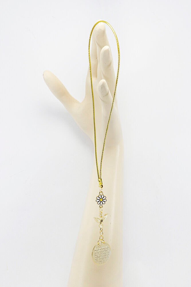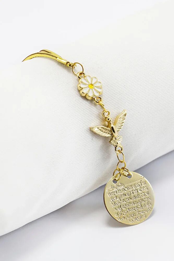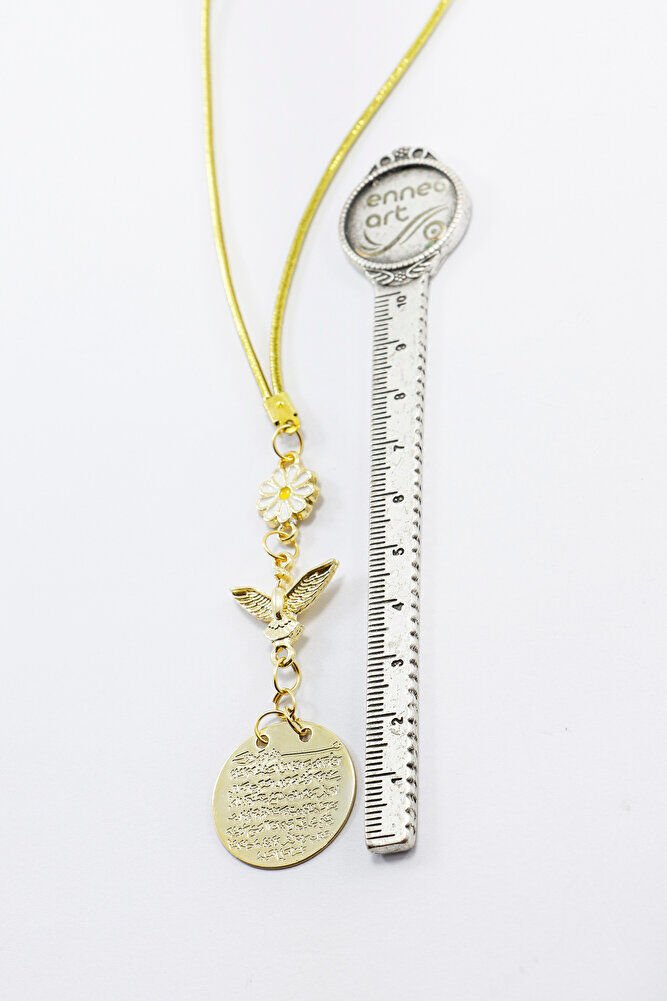 Beyaz Papatyalı Anka Kuşlu Metal Ayetel Kürsi Dualı Dikiz Ayna Süsü, Araba Hediyesi