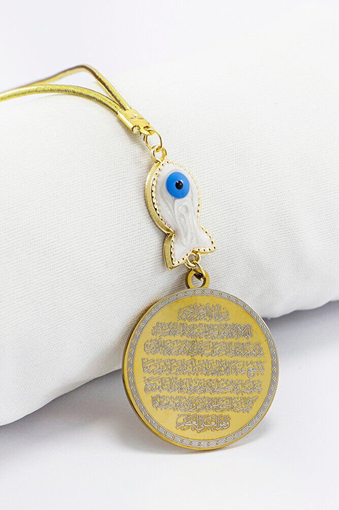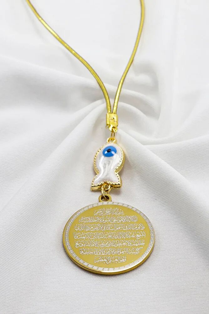 Beyaz Sedefli Balık Figürlü Ayetel Kürsi Nazar Ayeti Araba Dikiz Ayna Süsü, Yeni Araba Hediyesi