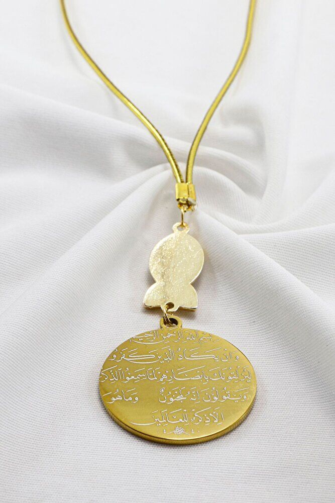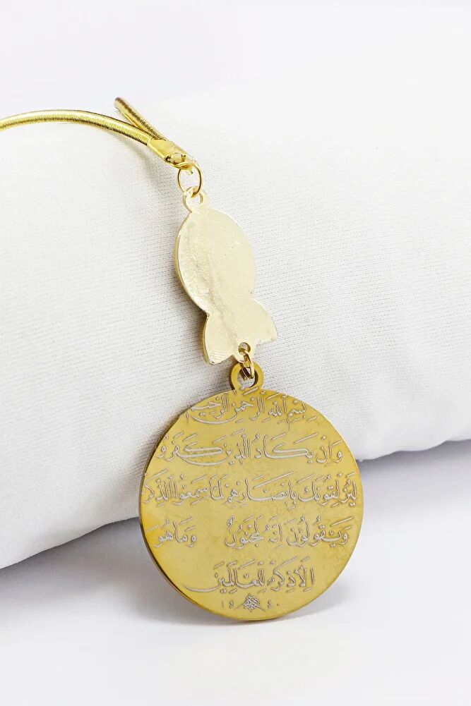 TÜM ÜRÜN FOTOGRAFLARI ENNEA ART FİRMASINA AİTTİR VE ÖZGÜN ÇALIŞMALARDIR.; İZİNSİZ KULLANIM, KOPYALAMA VEYA DAĞITIM KESİNLİKLE YASAKTIR.; GEREKLİ DURUMLARDA YASAL İŞLEM BAŞLATILACAKTIR.; Dualar lazer kazıma tekniği ile kalıcı bir şekilde kazınmaktadır.; Nazar Boncuğu el yapımı camdır ve çift taraflıdır.; Ürün el yapımıdır el yapımı olduğu için ufak farklılık ve düzensizlikler olasıdır.; İp elastiktir.; Elastik olduğu için her modele rahatlıkla takılabilmektedir.; Plaka altın renkli paslanmaz çeliktir.; Çelik plaka 3,5 cm ölçülerindedir.; Plaka çift taraflıdır.; Bir yüzünde Ayetel Kürsi diğer yüzünde ise Nazar Ayeti bulunmaktadır.; Nazar ayeti, İslam inancında kötü gözlerden ve olumsuz enerjilerden korunmak amacıyla okunan özel bir duadır.; İnanılır kabul edilir ki, nazar, bir kişinin üzerinde kötü niyetle bakılması sonucu, o kişinin hayatına olumsuz etkiler ve şanssızlık getirebilir.; Nazar ayeti, Allah ın korumasına sığınarak, kişinin bu tür olumsuz etkilerden korunmasını sağlar.; Ayrıca, nazarın kişiye zarar vermemesi için Allah'ın kudretine ve ilahi gücüne olan inancı güçlendirir.; Bu dua, zihinsel huzur ve manevi güç sağladığına inanılır, bu nedenle sıkça evlerde, iş yerlerinde veya kişisel eşyalar üzerinde okunur.;