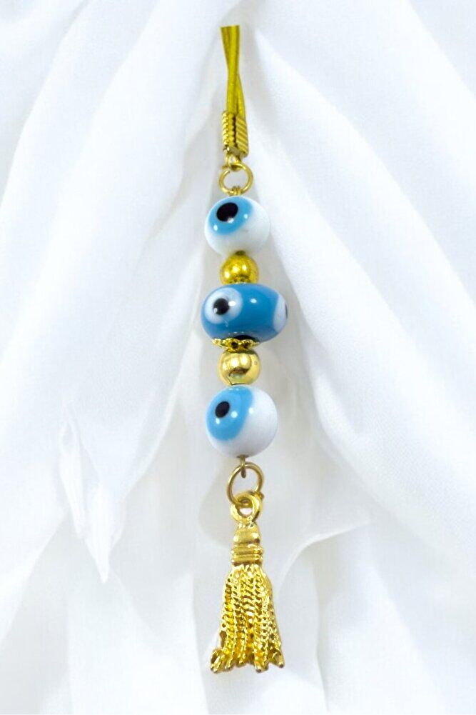 Beyaz Ve Mavi Cam Nazar Boncuklu Araba Dikiz Ayna Süsü, El Yapımı Yeni Araba Hediyesi