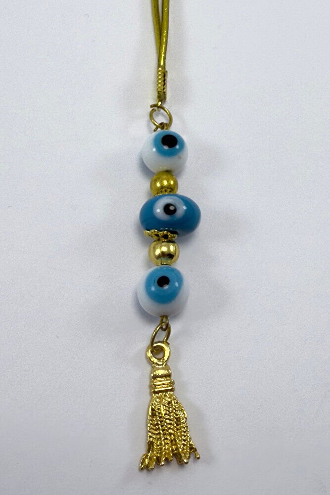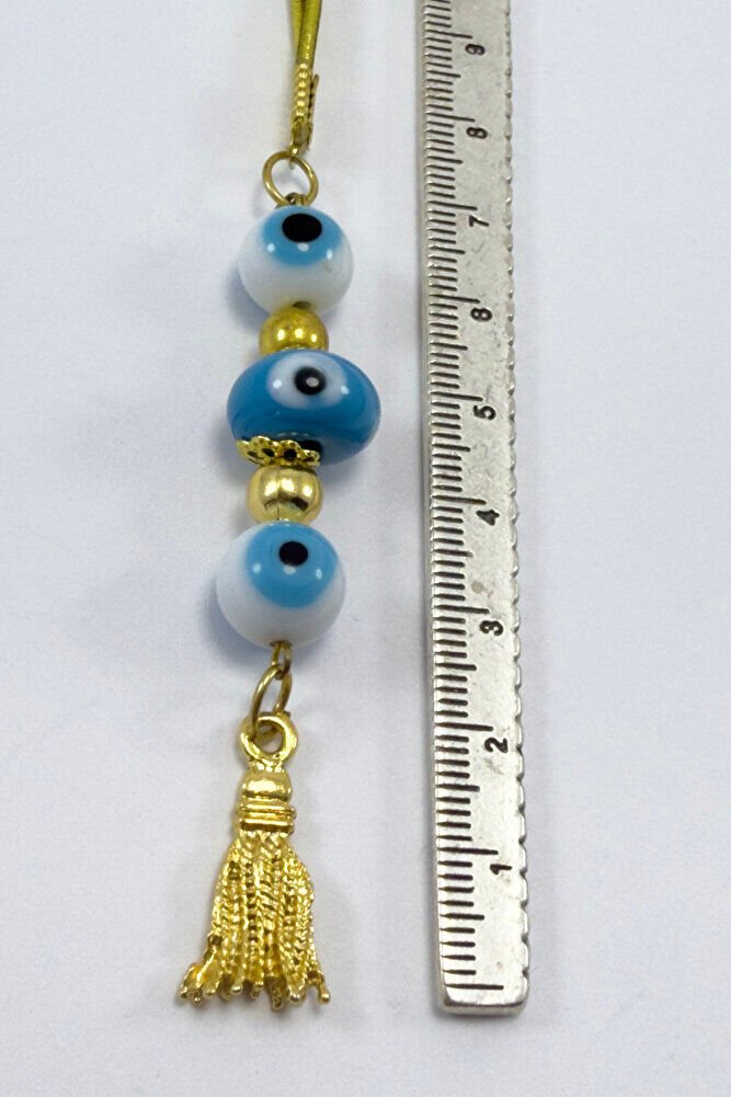 Ürün el yapımıdır.; El Yapımı olduğu için ufak farklılık ve değişiklikler olasıdır.; İpi lastiklidir.; Lastikli olduğu için her model araca rahatlıkla takılabilmektedir.; Nazar boncuğu el yapımı camdır.; Püsküller metaldir.;