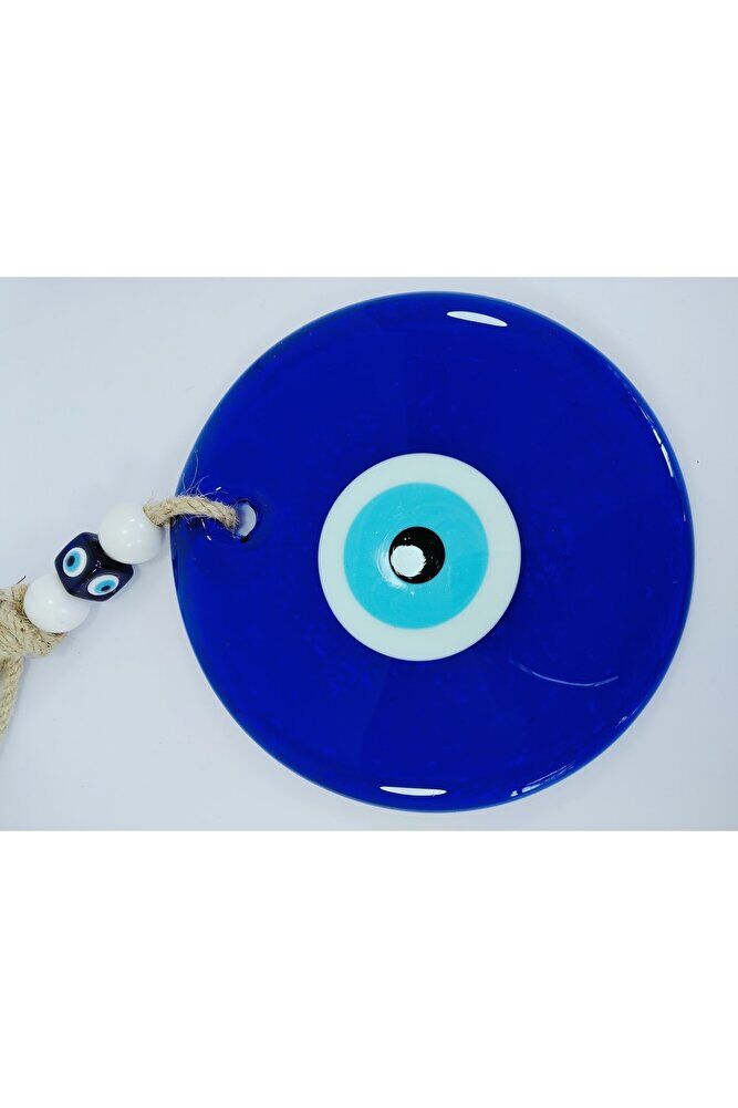 Büyük Nazar Bocuğu 14cm El Yapımı Cam Boncuk Hasır Ipli Duvar Dekoru
