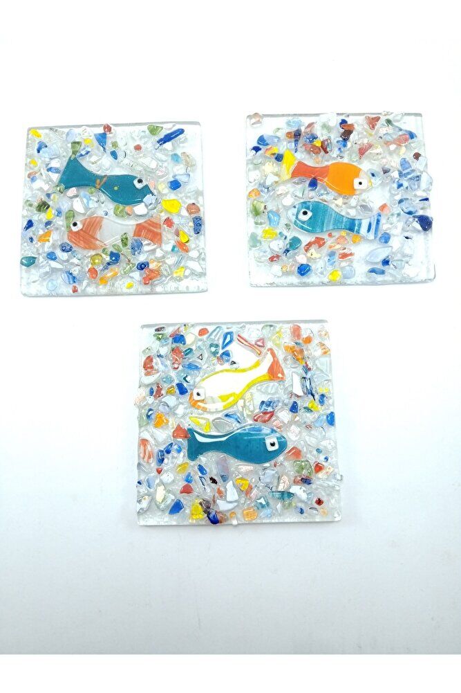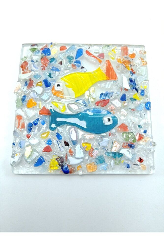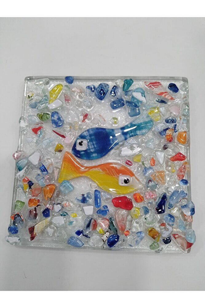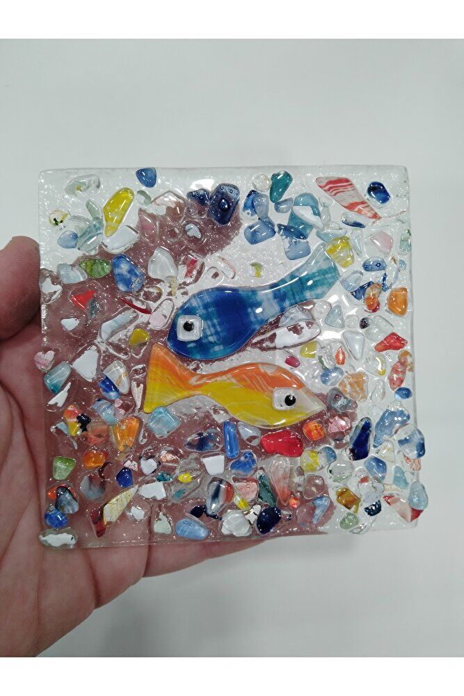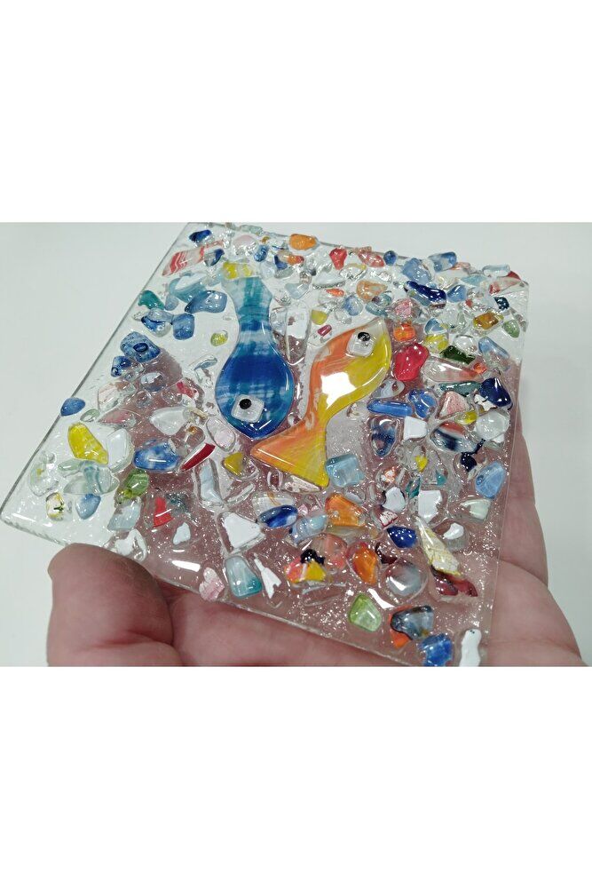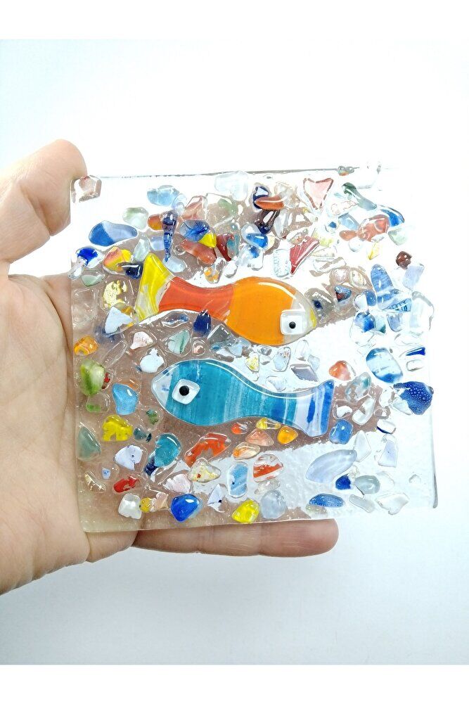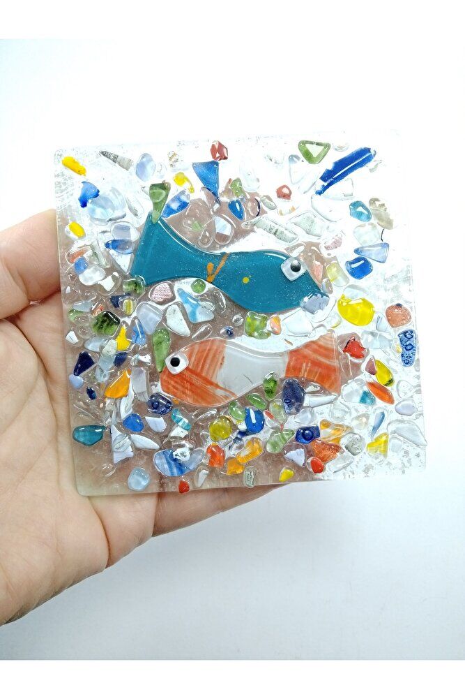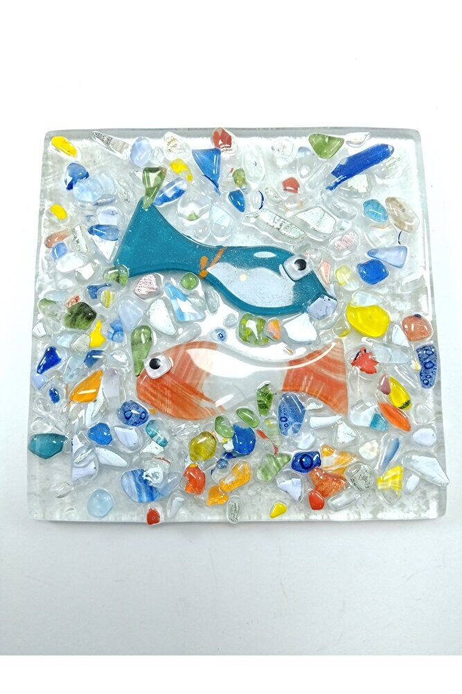 Ürün el yapımıdır. ; Füzyon cam sanatı ile üretilmiştir. ; 10*10 cm boyutunda olup küçük giderler için tasarlanmıştır. ; Dekoratif obje olarak da kullanılabilir. ; Özel tasarımdır. ; El yapımı olduğu için ufak farklılık ve düzensizlikler olasıdır. ; Balıkların rengi görselden farklı olabilir. ; Camın kesimi el ile yapılmaktadır.;